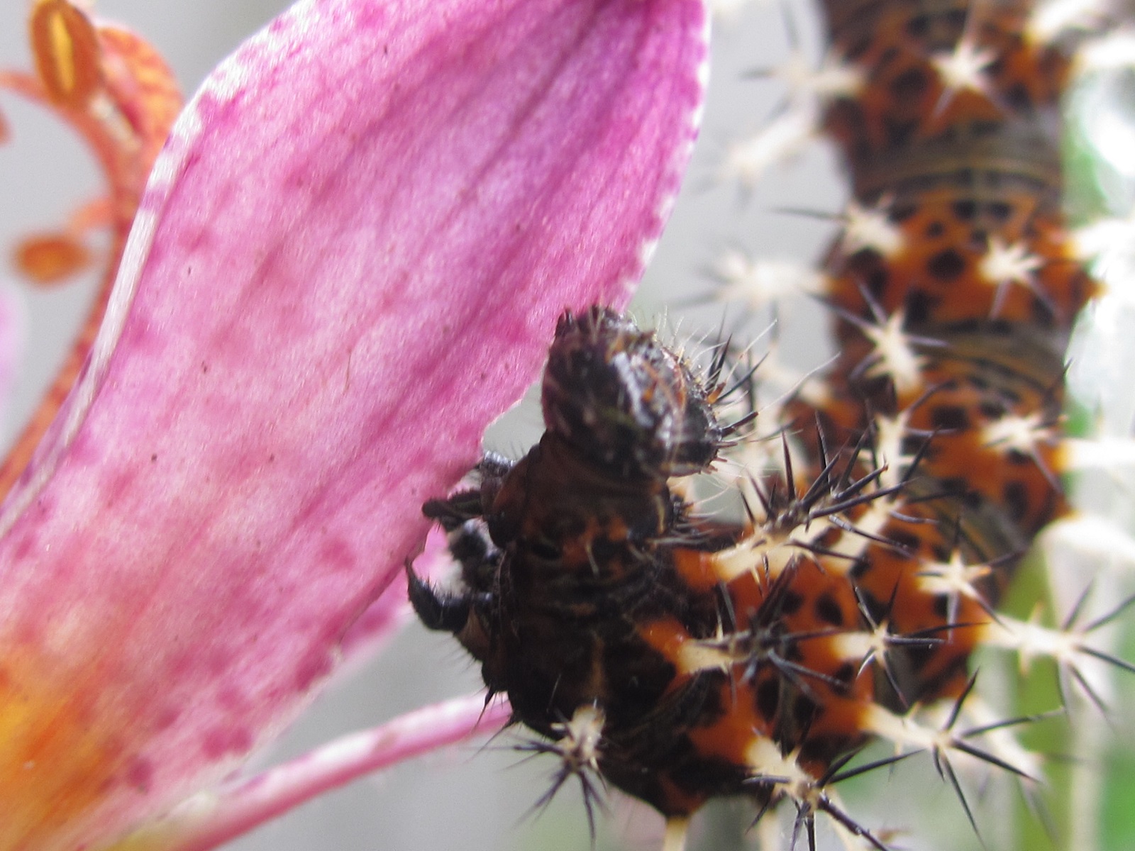 ホトトギスや百合に、こんなトゲトゲの毛虫を見かけたことはありませんか?