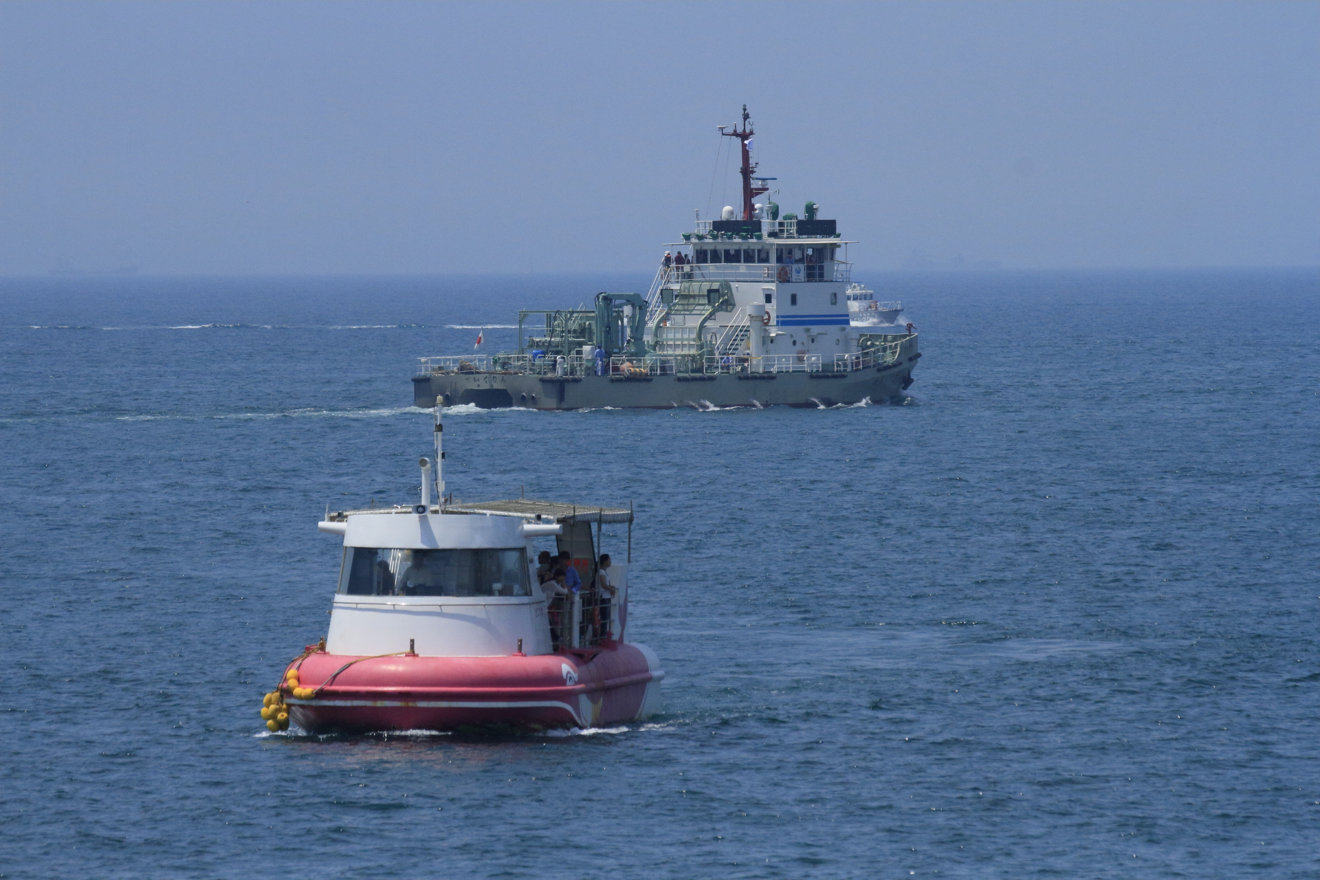 ちょっと変わった形の船ですが、観光船で水中観察が出来るらしい...