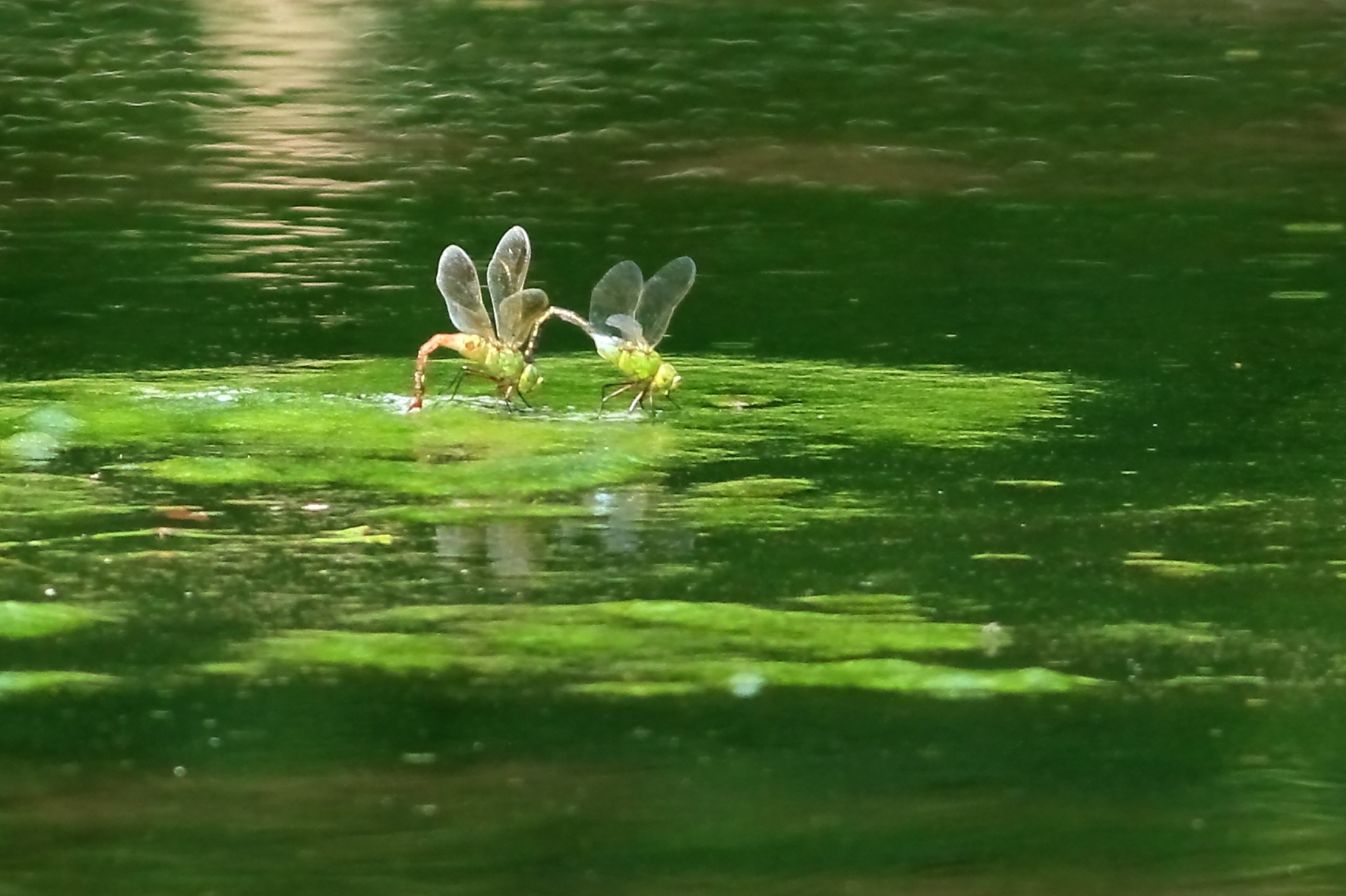 幸い池の底に藻がはびこっていたようで、美しい緑に