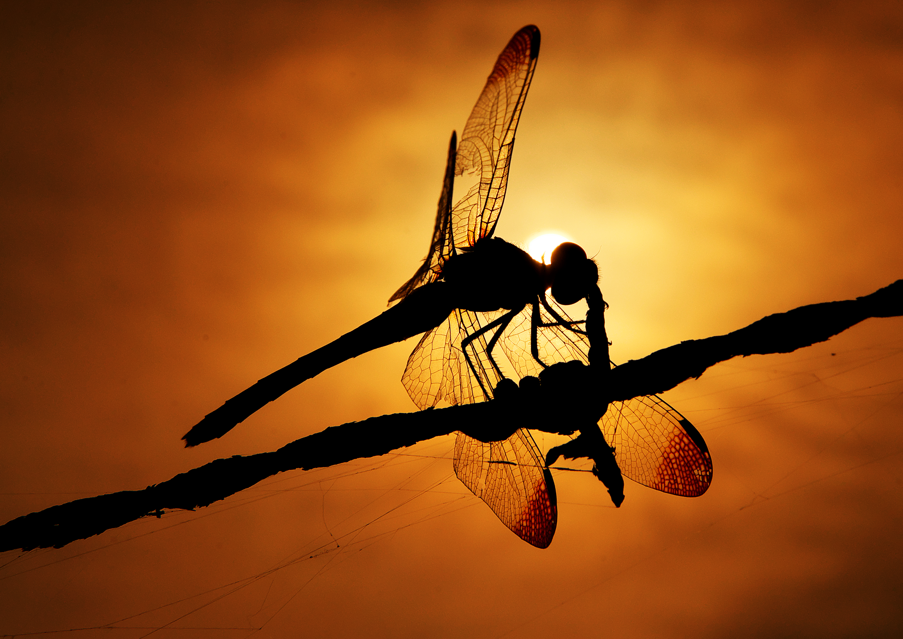 沈みゆく太陽の光を全身に受けとめ・・今日一日を懸命に生きたトンボ・・・