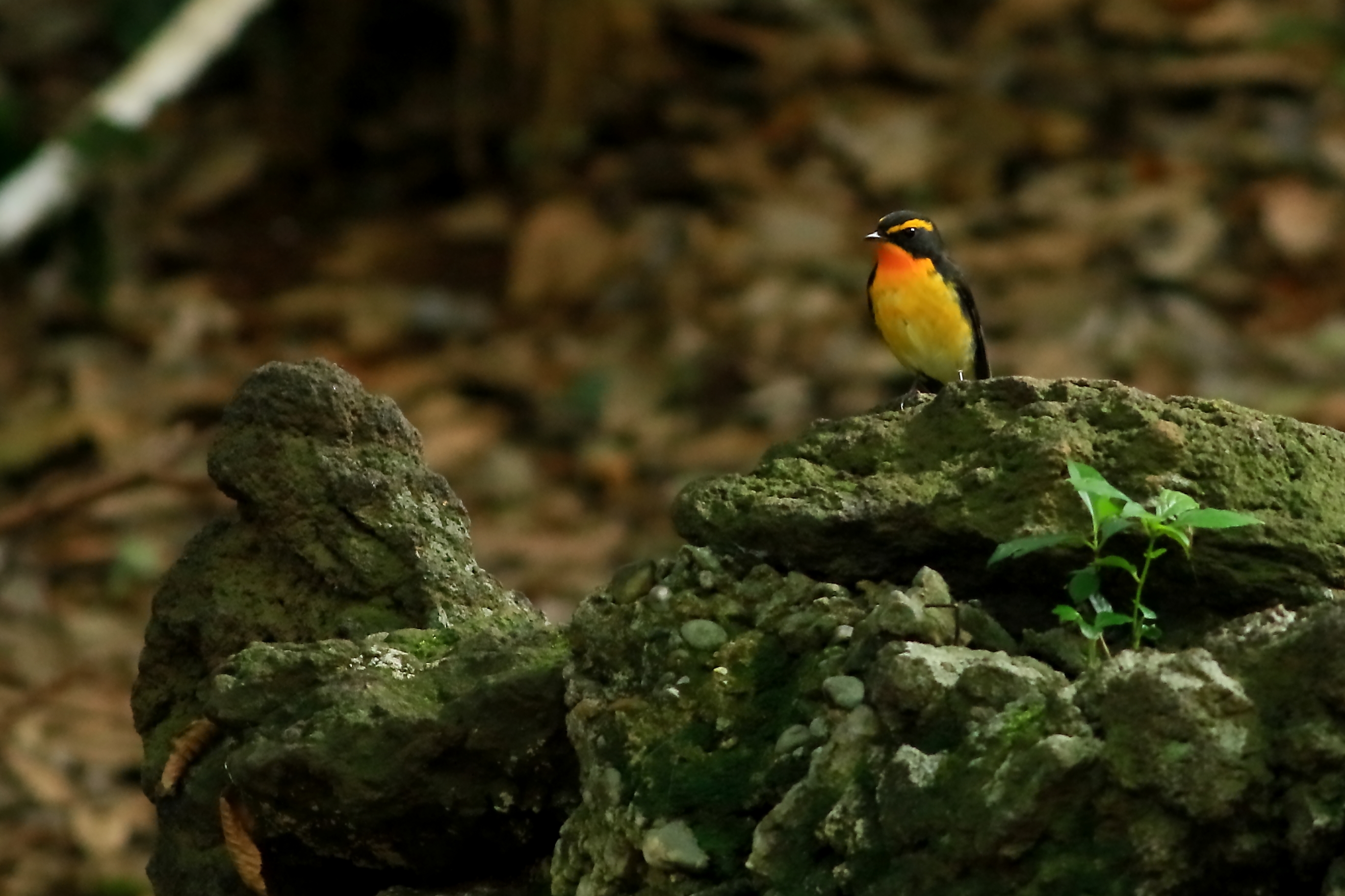 いつも枝どまりのキビタキですが、石の上にも止まってくれました。