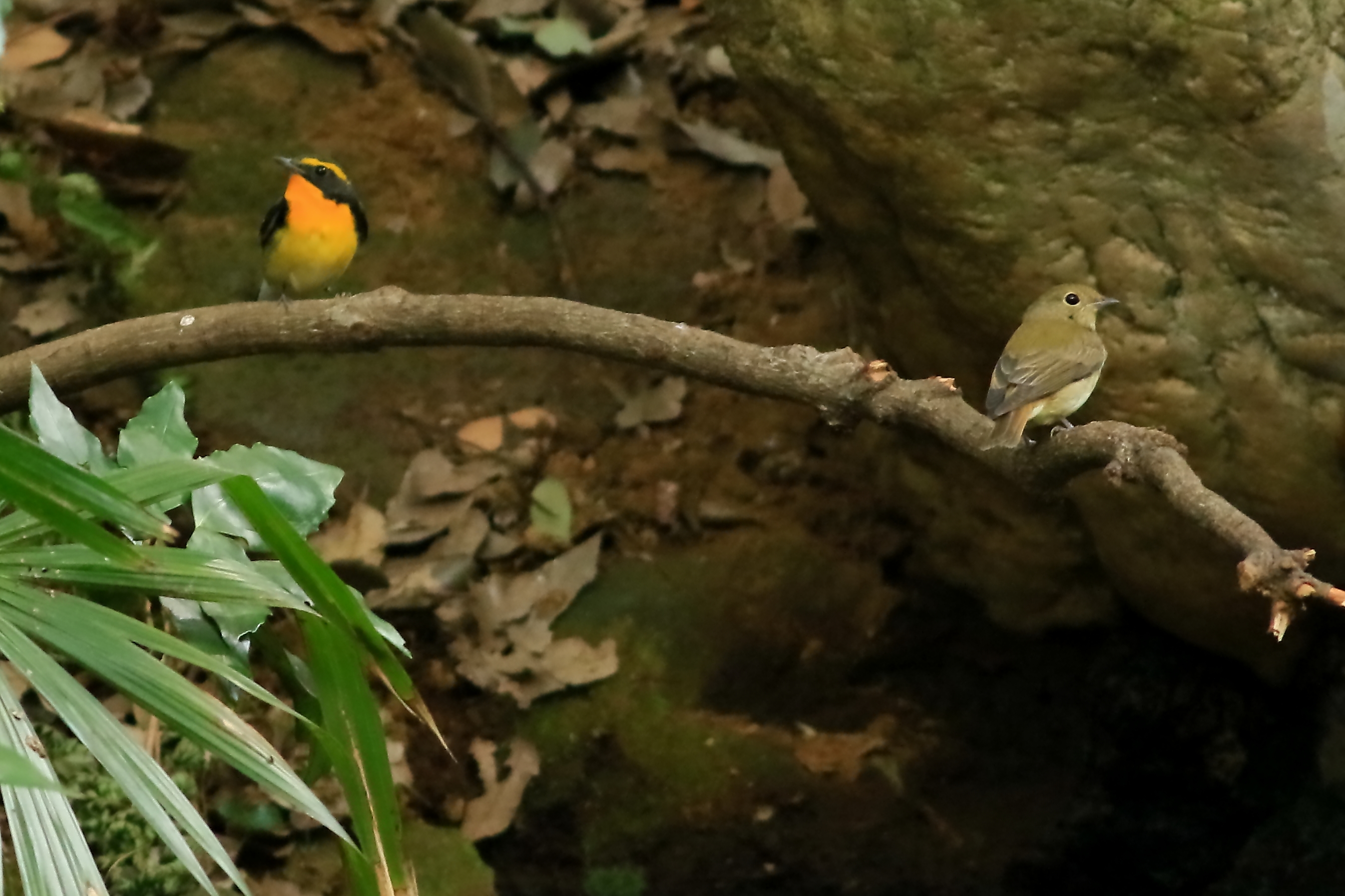 キビタキの雄と雌との出会いです。5点連作になります。雌が少し積極的なようですが、
