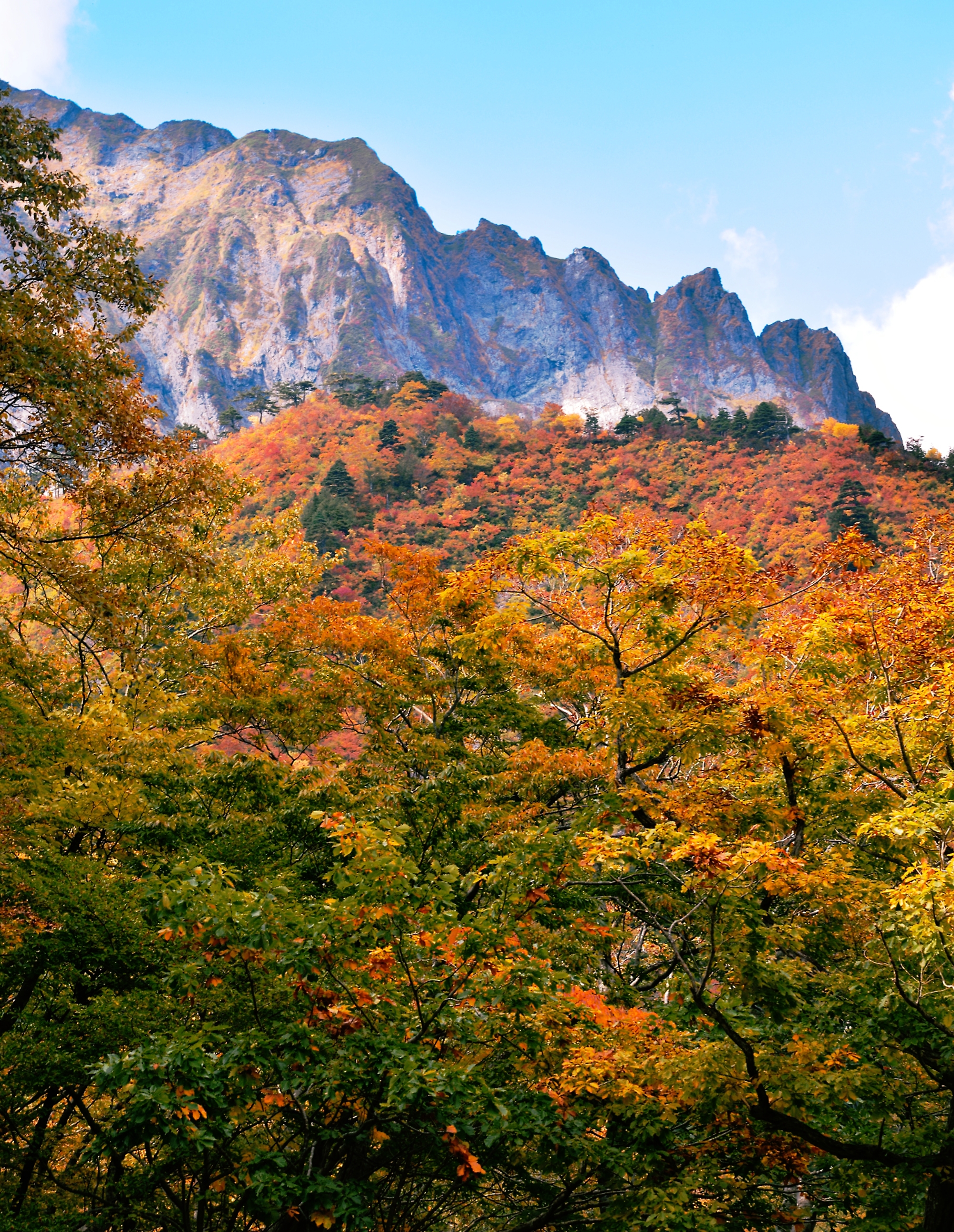 と見上げるその先に、もう一段奥の高い山の紅葉ぶりが見えて、