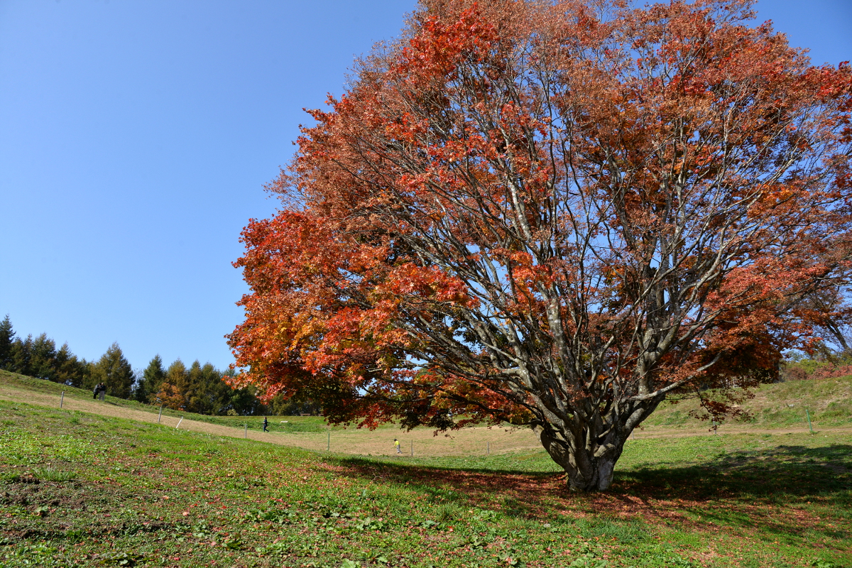 「七色大カエデ」として観光名所になっていますが、開墾のために伐採された切り株から復活したため、「奇跡の大樹」とも呼ばれているそうです。