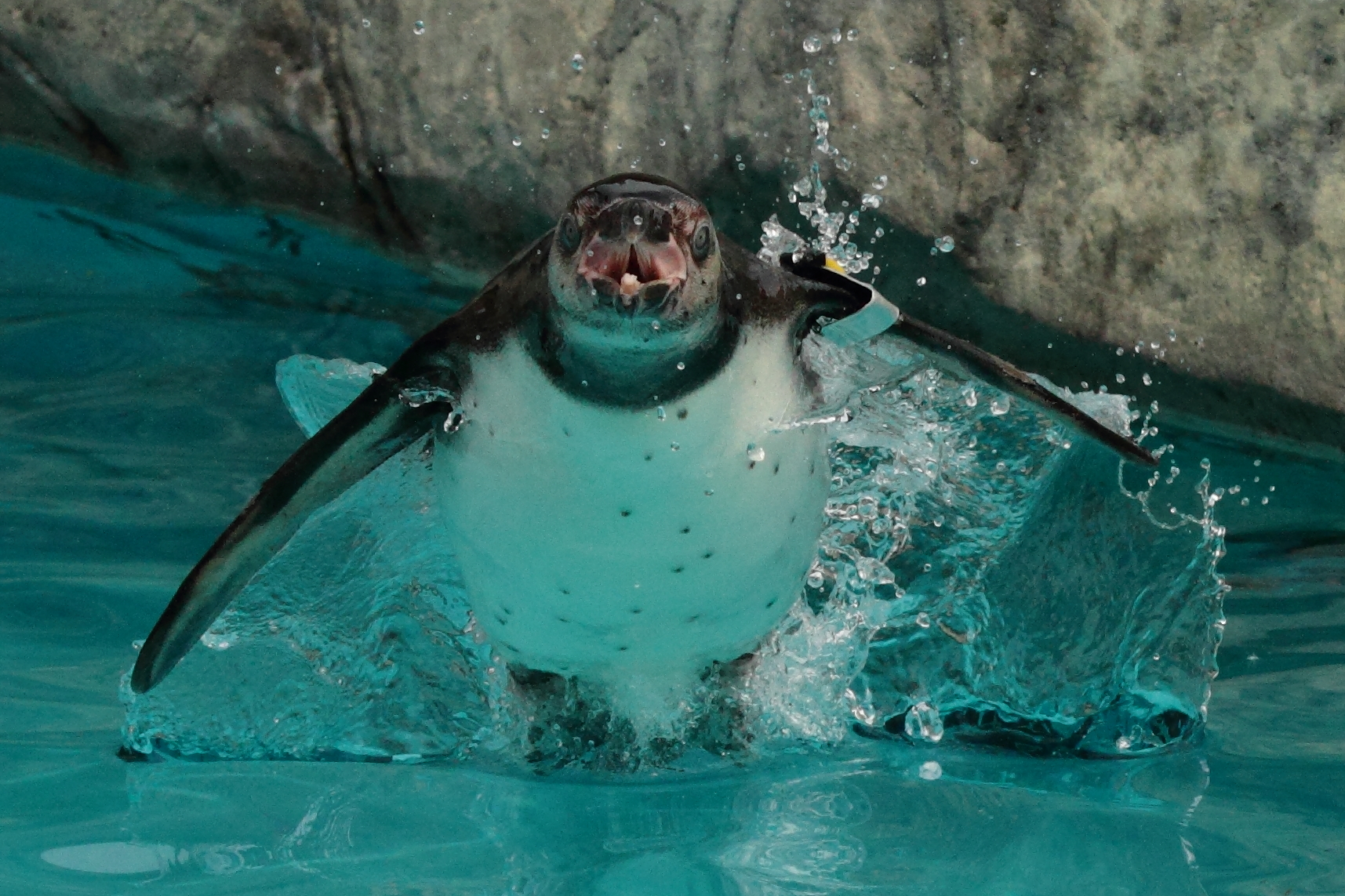 水中から超高速で勢いよく水を蹴って跳ぶ瞬間を捉えました。