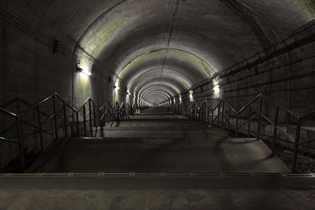 日本一のもぐら駅と呼ばれる群馬県土合駅です。この462段の階段の先にやっとホームがあります。
