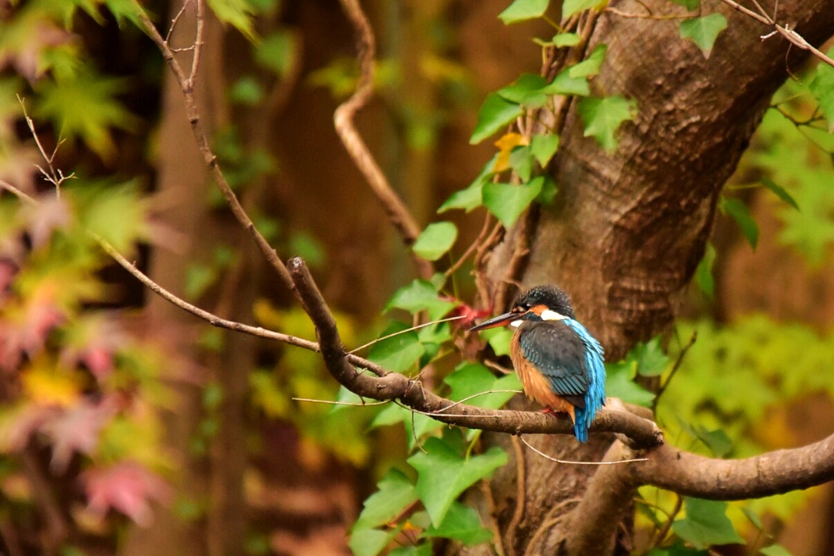 いつもの公園にて、カワセミが何か黄昏ているように見えました。