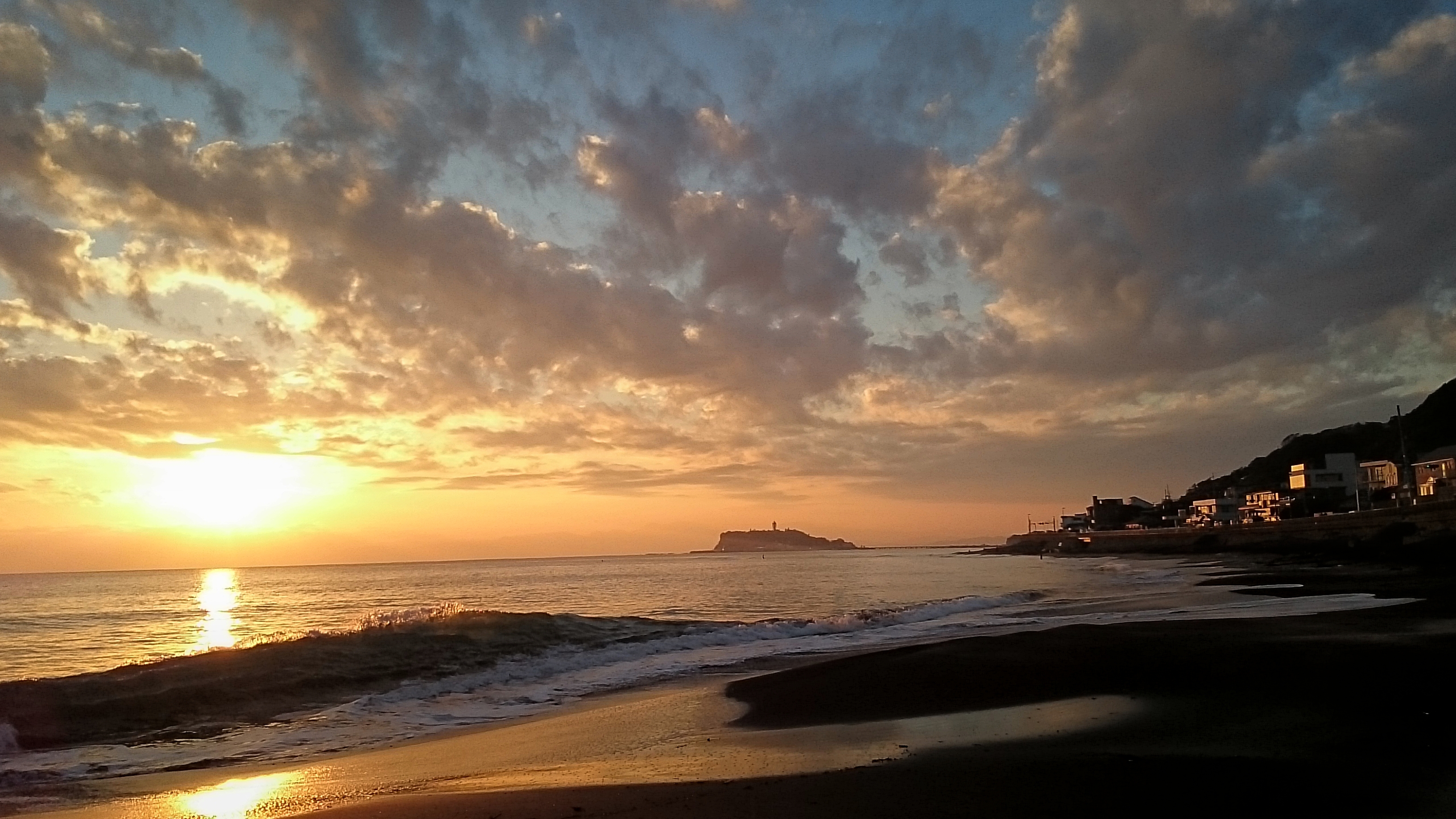 鎌倉へ行った帰りに稲村ケ崎へ夕日を見に行きました。