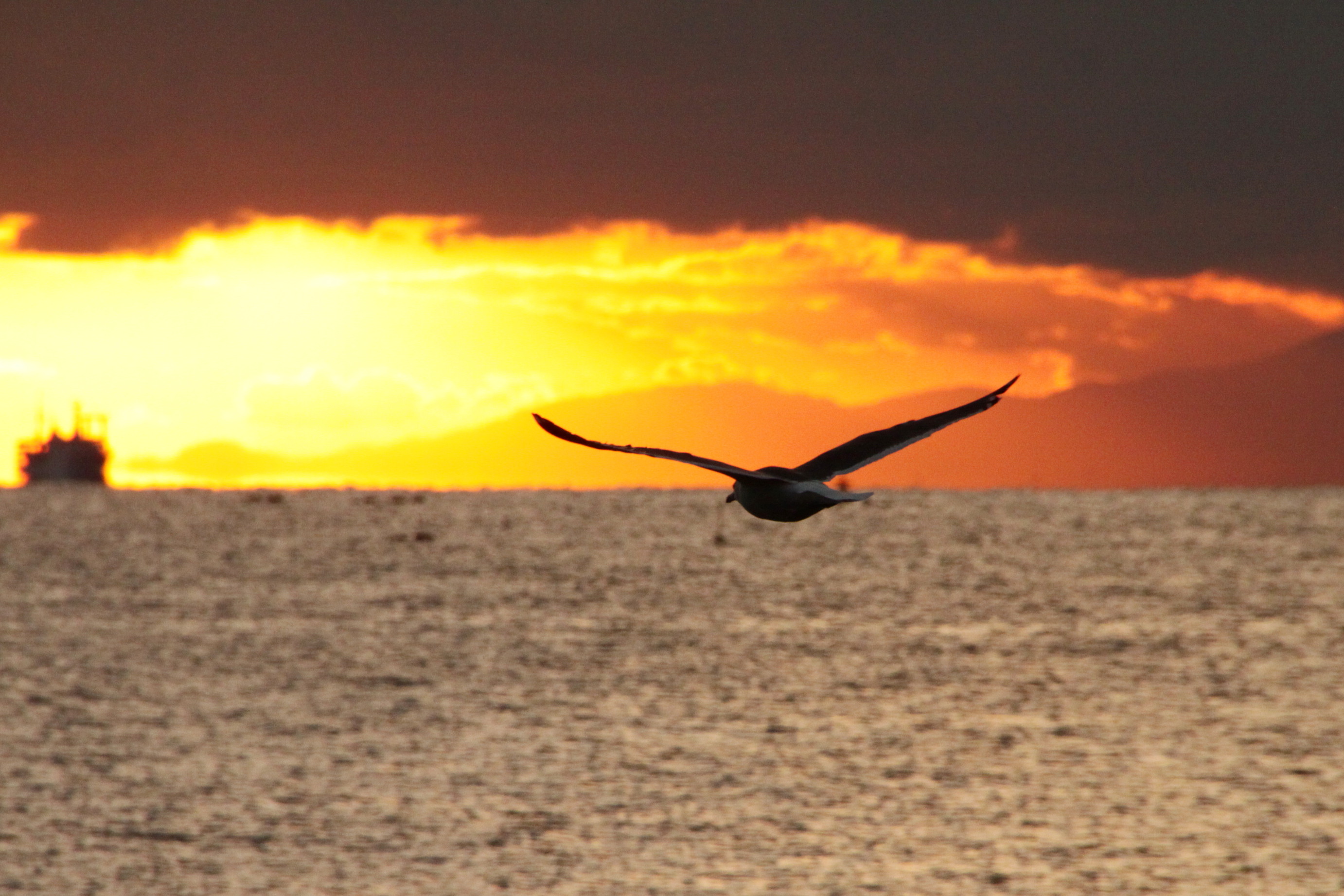 夕日に向かってまっしぐら。