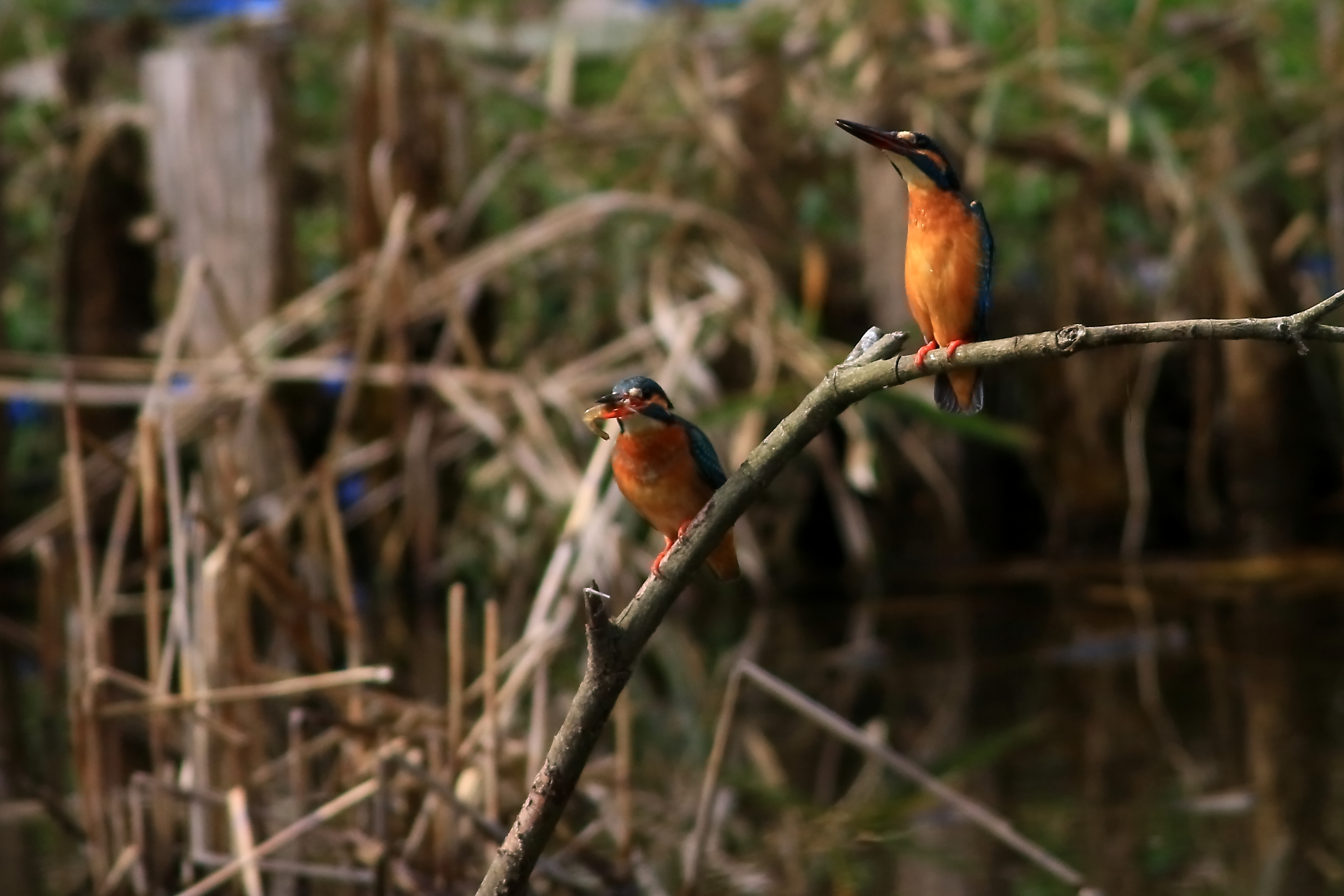 求愛給餌が終わり得意のポーズを見せるカワセミの雄です。