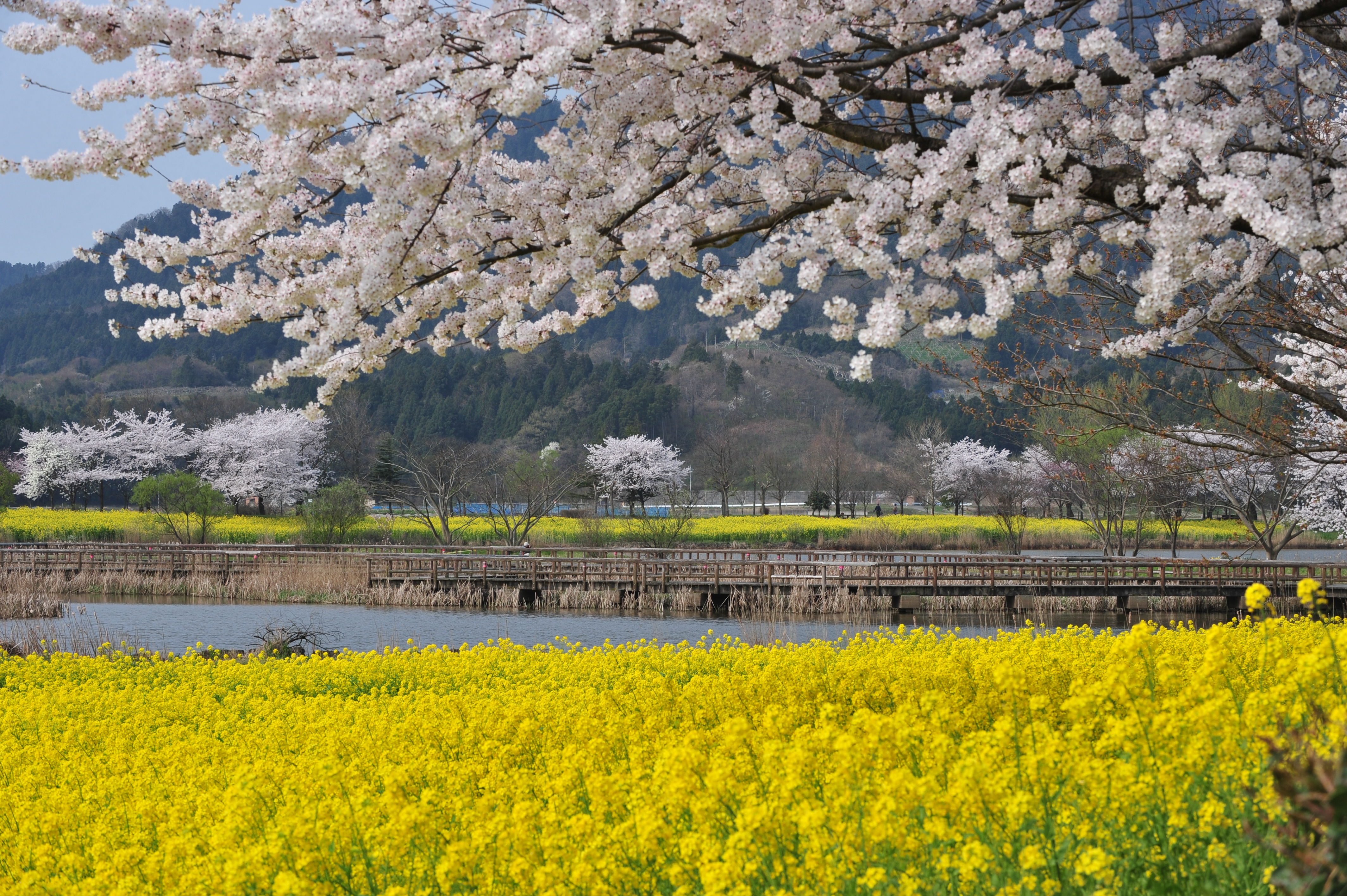 新潟の春を実感する季節になりました 桜の開花に合わせて菜の花の開花を調整していると聞きました その結果がこの風景を作りました、