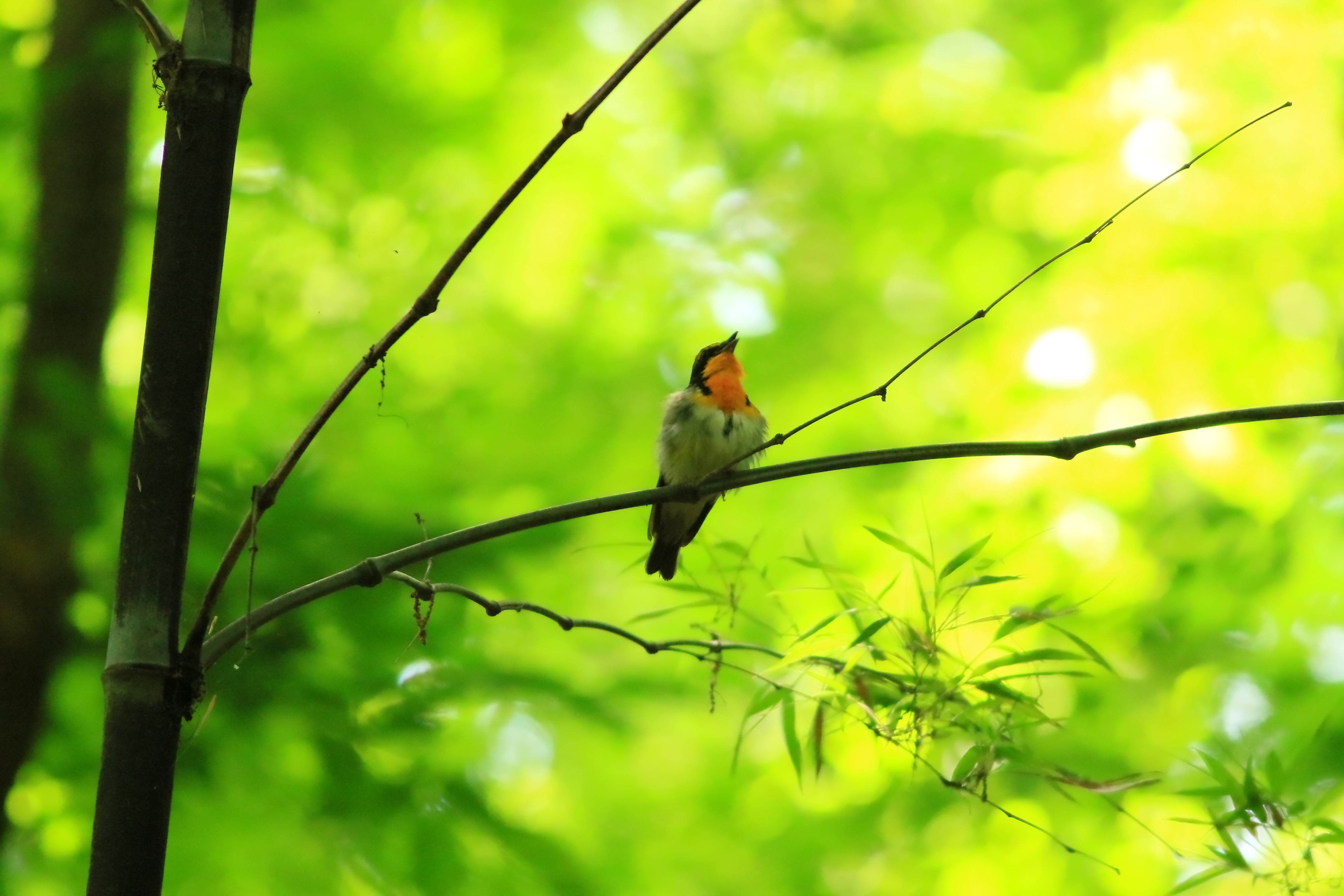 竹の細い枝に止まって美しい声で囀ってくれました。