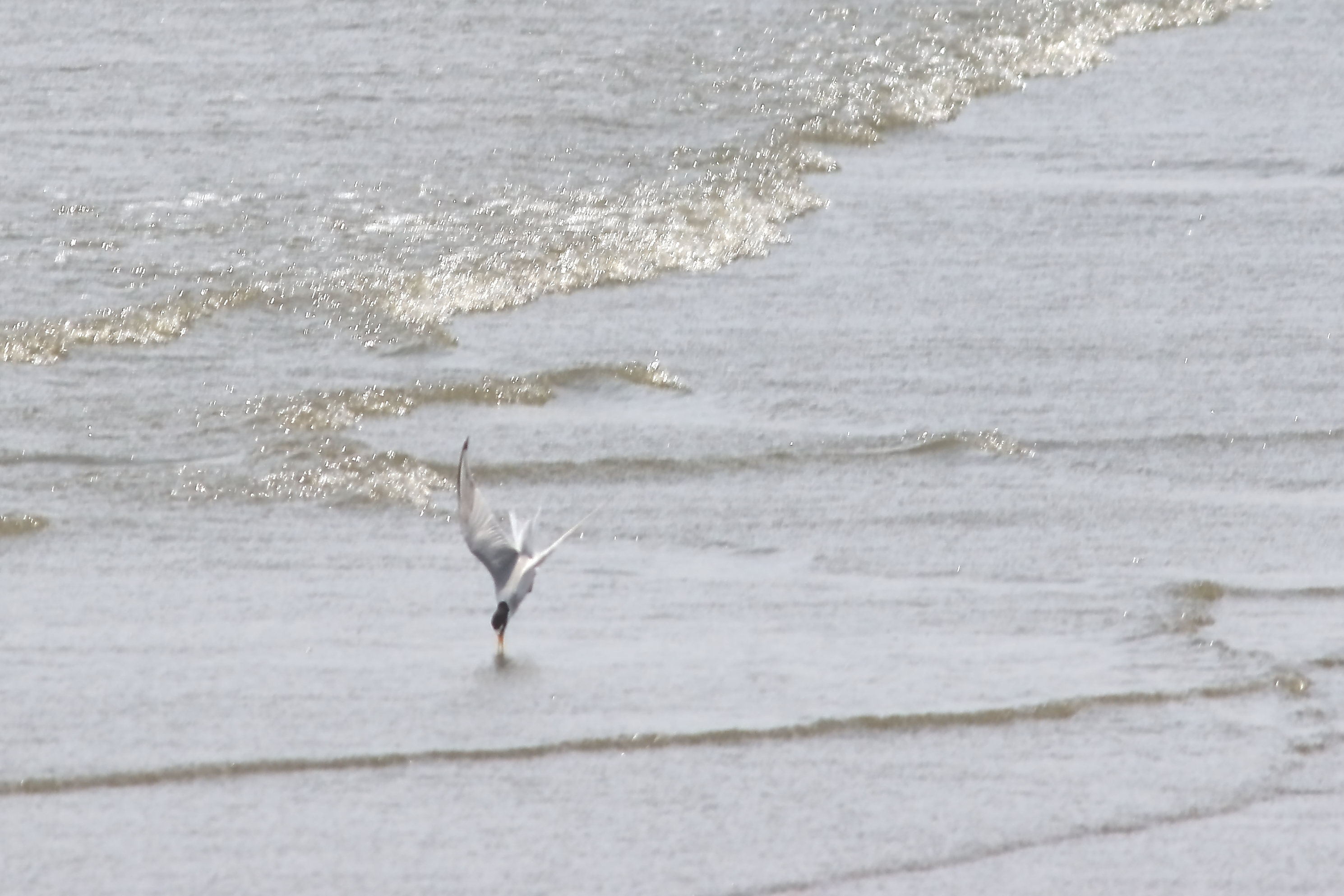 動いている魚は結構取り逃がすようです。コアジサシは飛行しながら一気に水に飛び込むので、