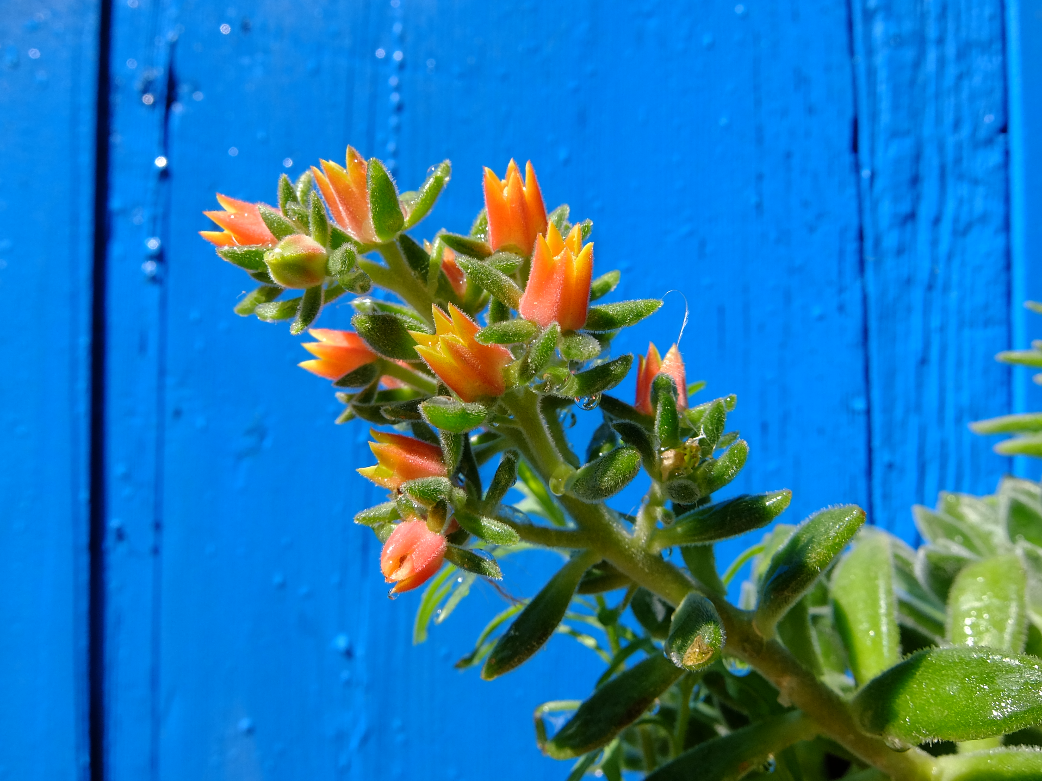家の Echeveria Setosa が咲き始めました。多肉植物・エケベリアの一種です。Setosa (セトーザ)とは、『絹のような』『シルキー』の意。葉や花に、うぶげのような細かい毛があるので、Setosa と形容されるようです。