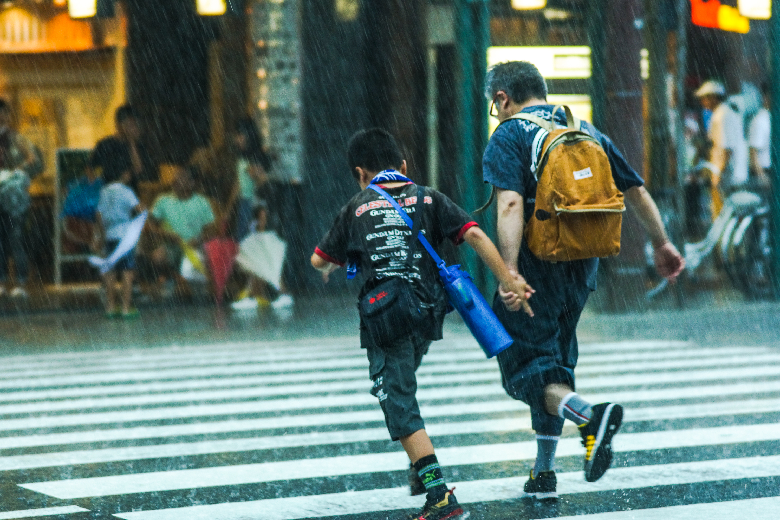 大粒の雨にお困りだった思います。握り合う手が気に入りました。