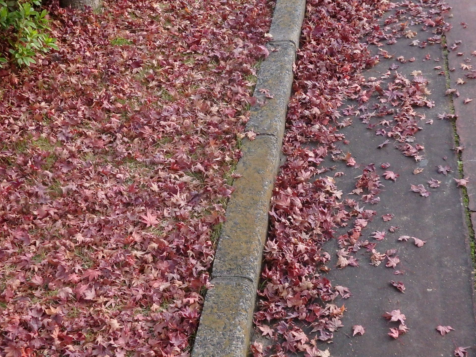 木枯らしが強くなった。さすがの紅葉は寒さに勝てず、枯れて、落ちた。落ちた葉は枯れ、色あせている。そんなに美しくないが、晩秋のむなしさである。