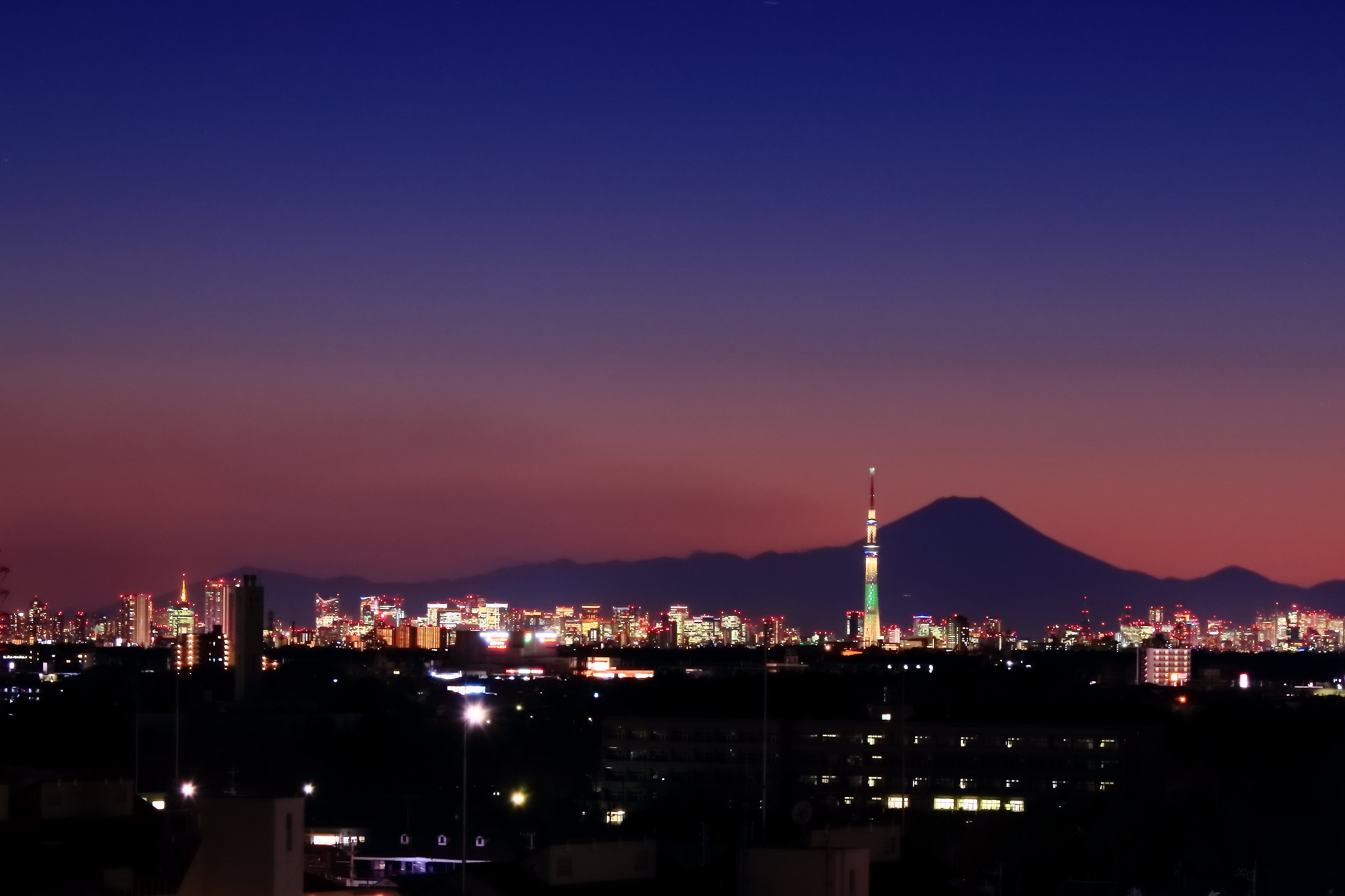 今日23日は昭和のシンボル東京タワー(高さ333m。画面左、2個の照明の上)が開業して60年、還暦を迎えました。