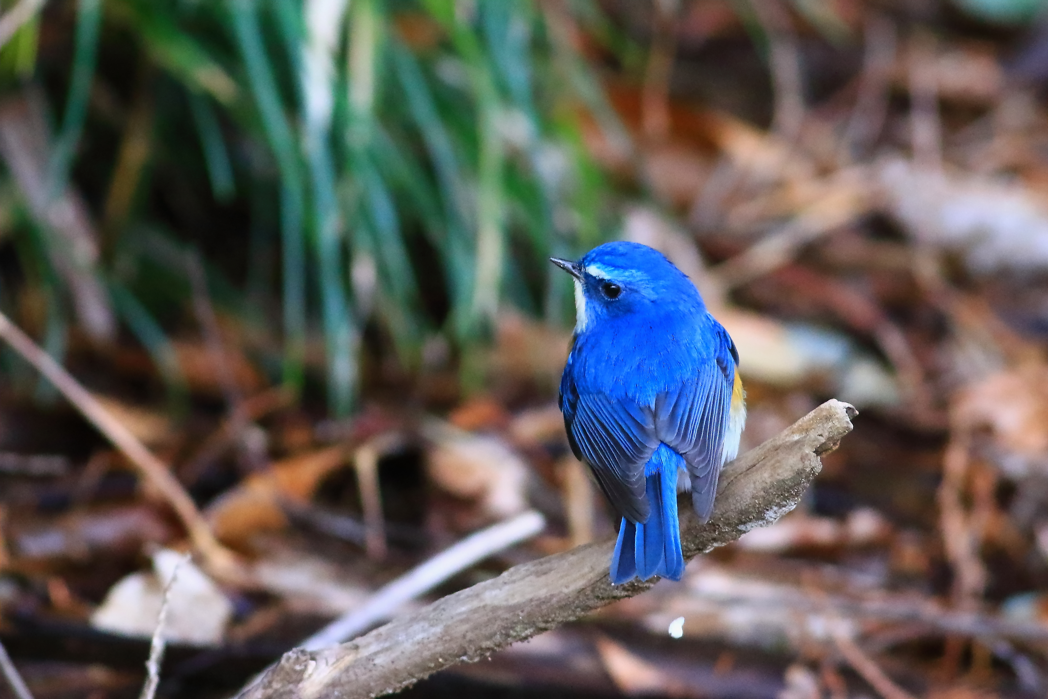 木の上に残っていた一片がひらひらと舞い落ち、気が付いたかのようにルリビタキの