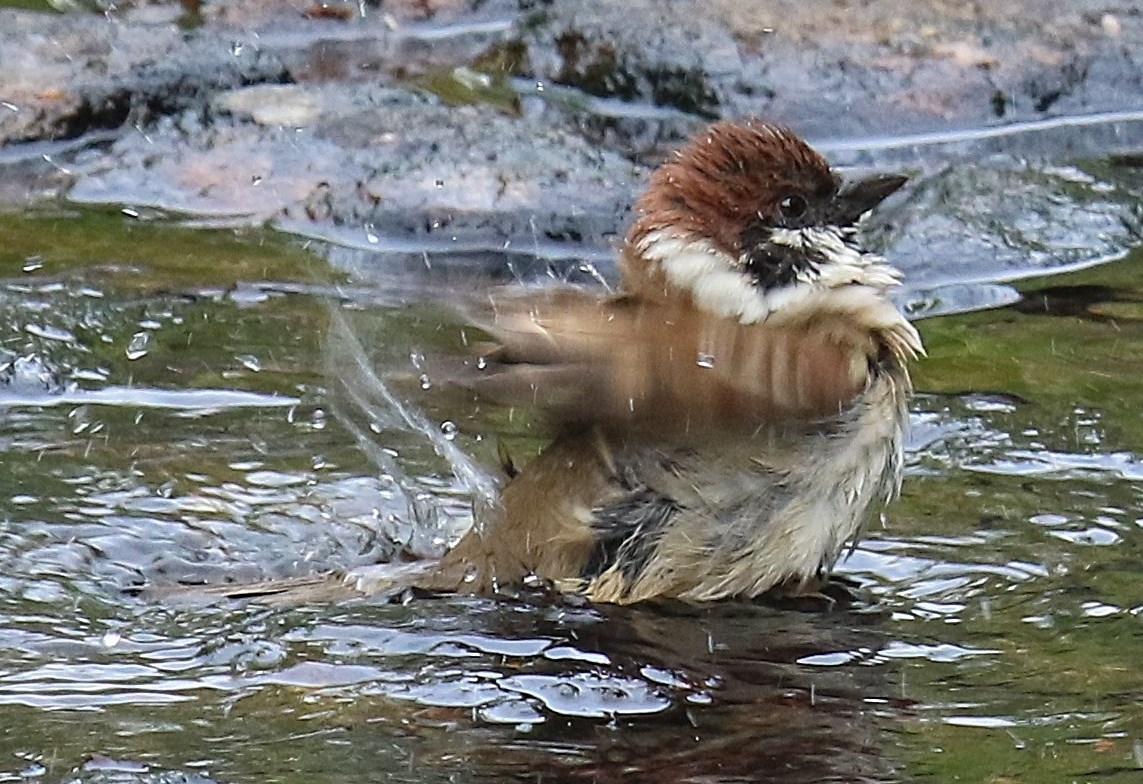 雀でも暑いんです! 翼をバタツカセ水浴中・・ご機嫌の様です!?