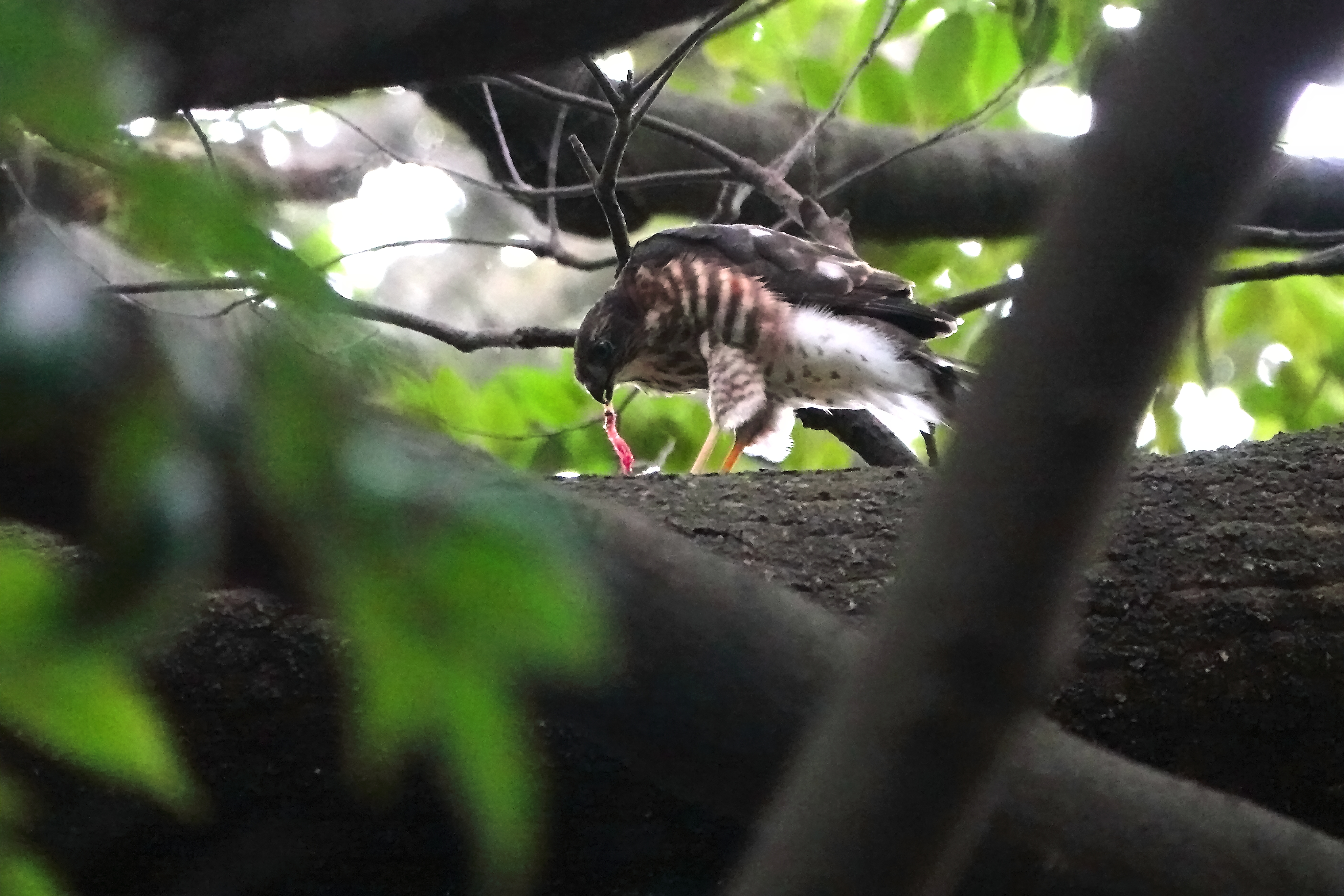 カラスも遠ざかり、ツミの幼鳥ゆっくり時間をかけての食事です。