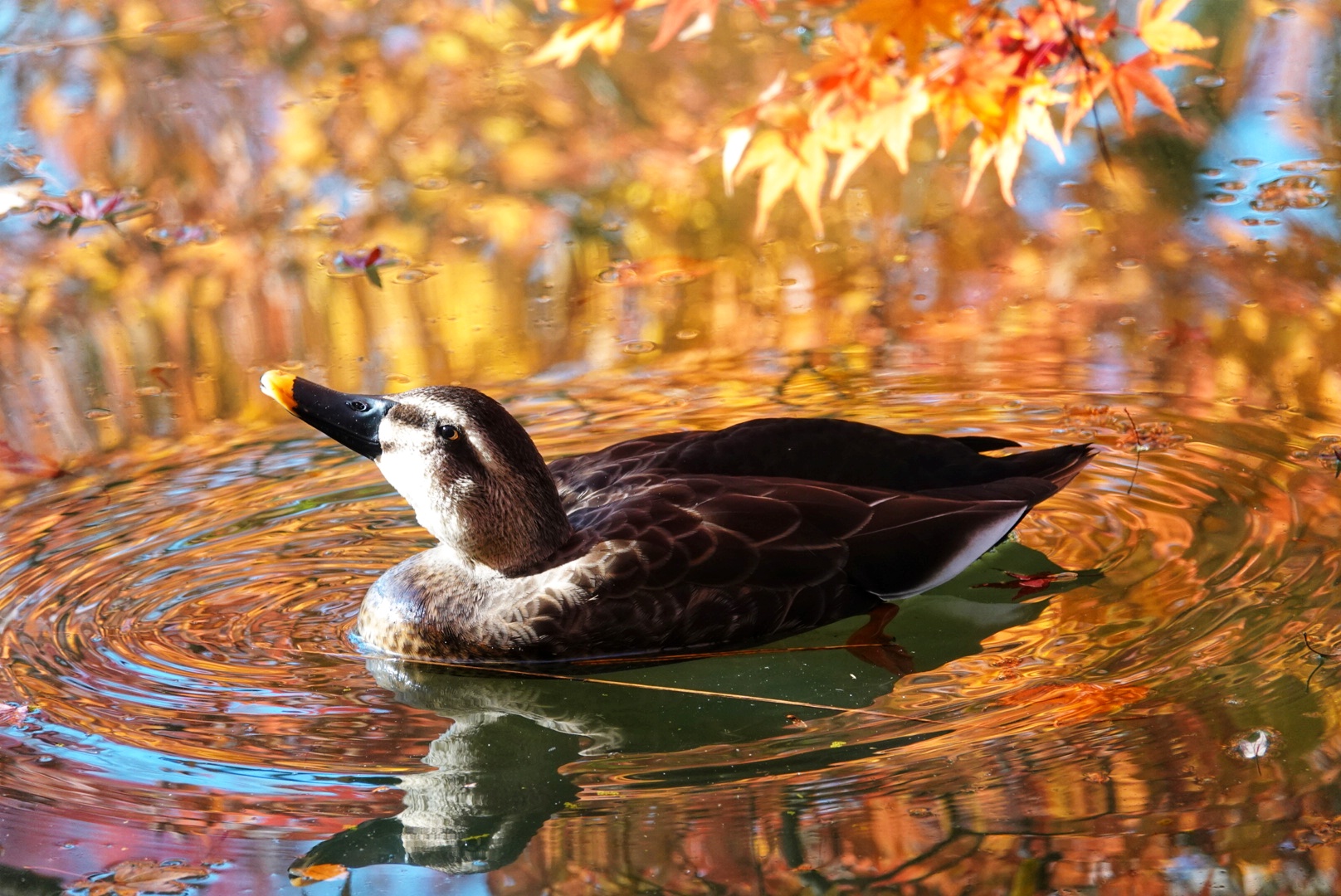 ナイスショットです!^^鴨のうつろな眼差しと視線の先に紅葉が・・全ての画面を現してますね^^V