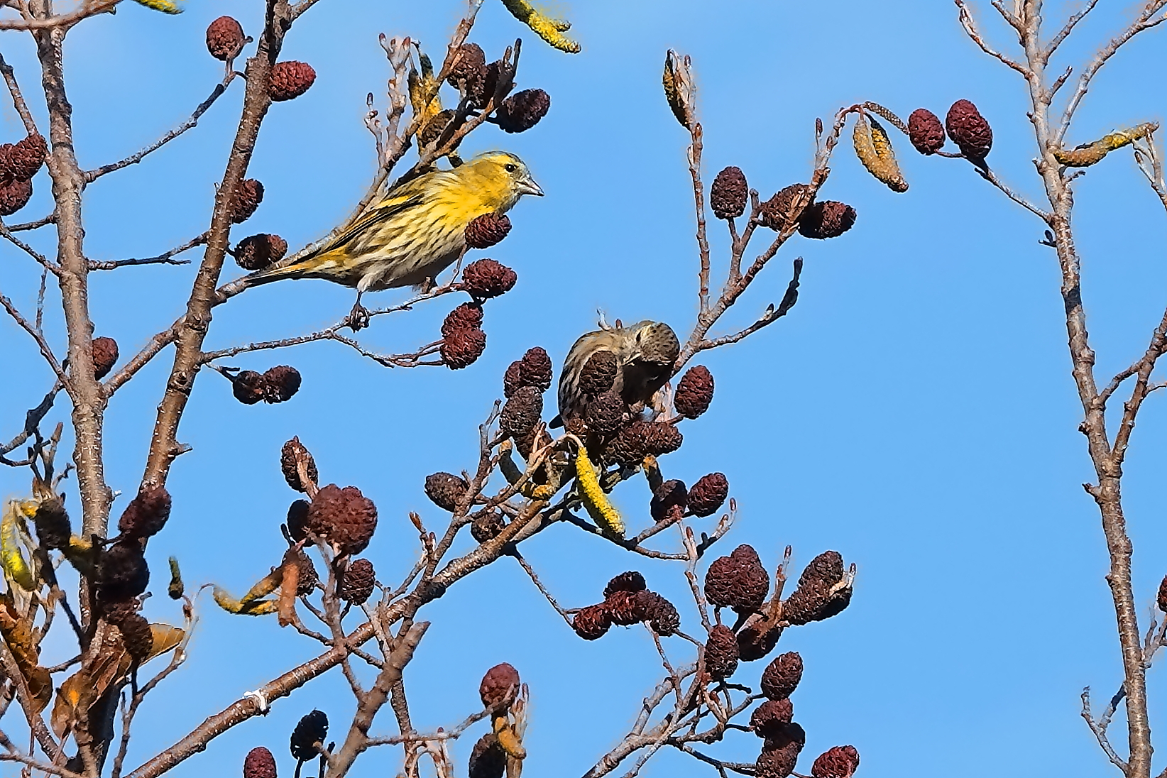 野鳥の中では最も黄色い部類に入る体長12.5㎝の冬鳥マヒワ。