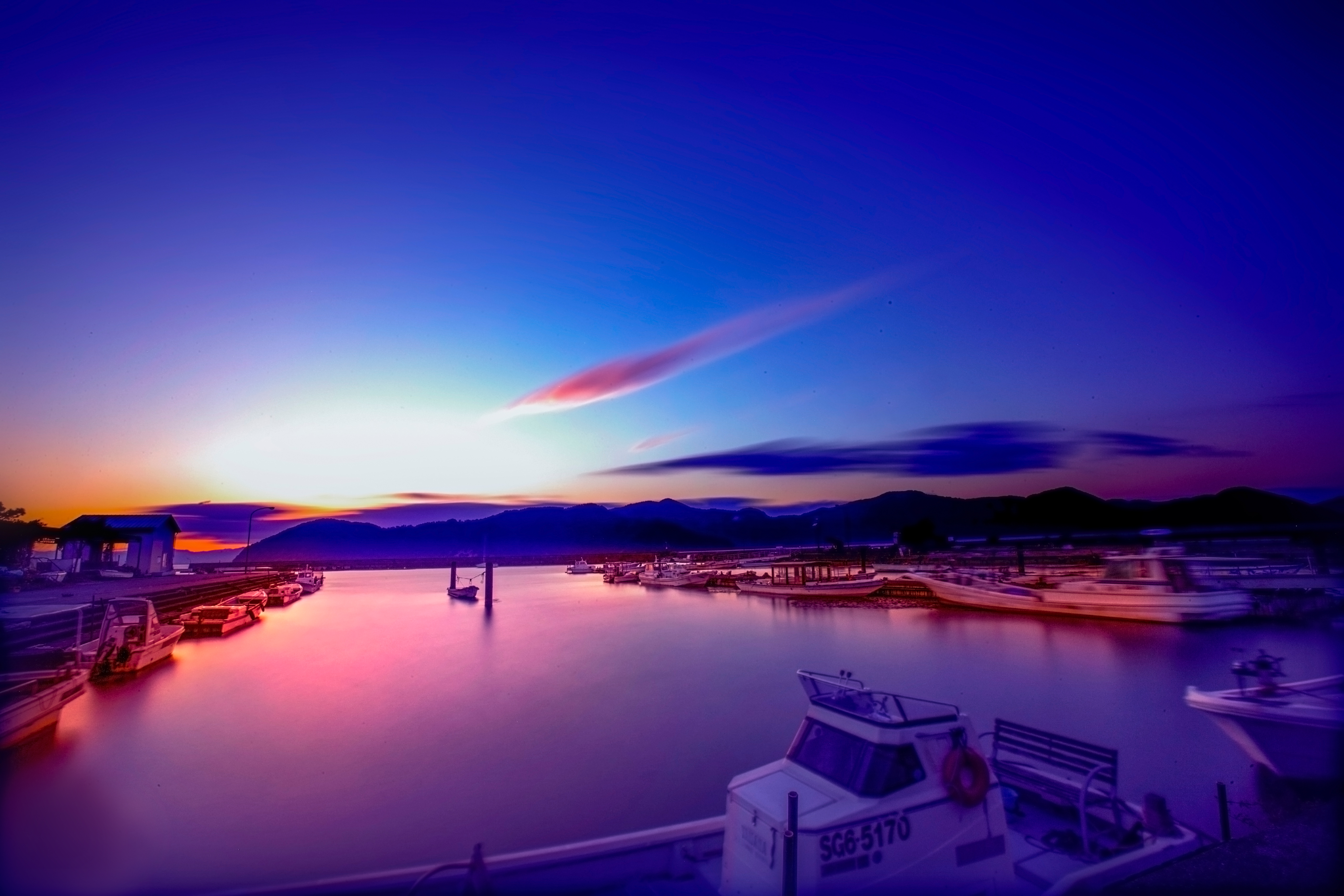 水面と空のグラデーションが素晴らしいです。