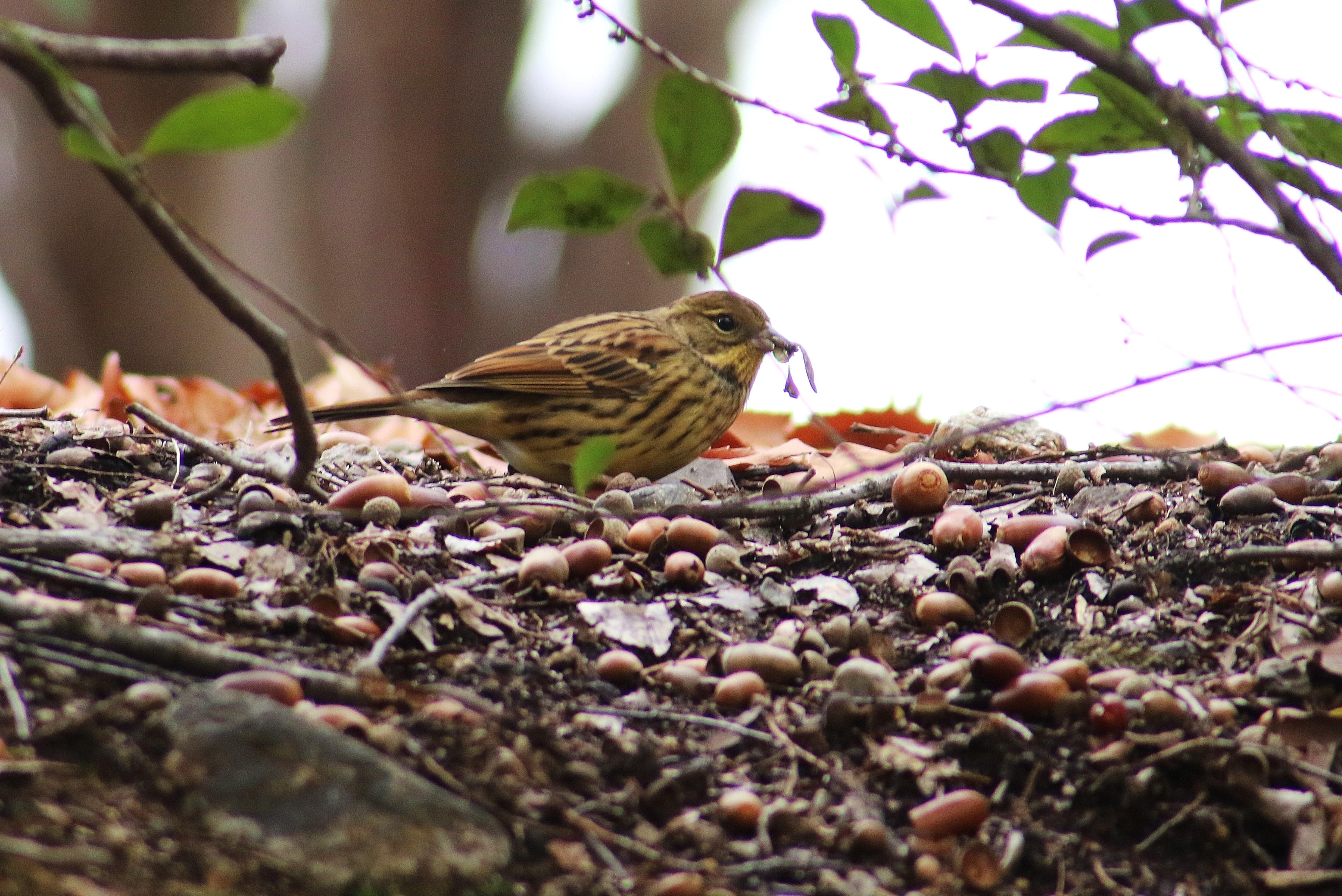 土手に落ちてるどんぐりを食す、何鳥( アオジ )でしょうか?