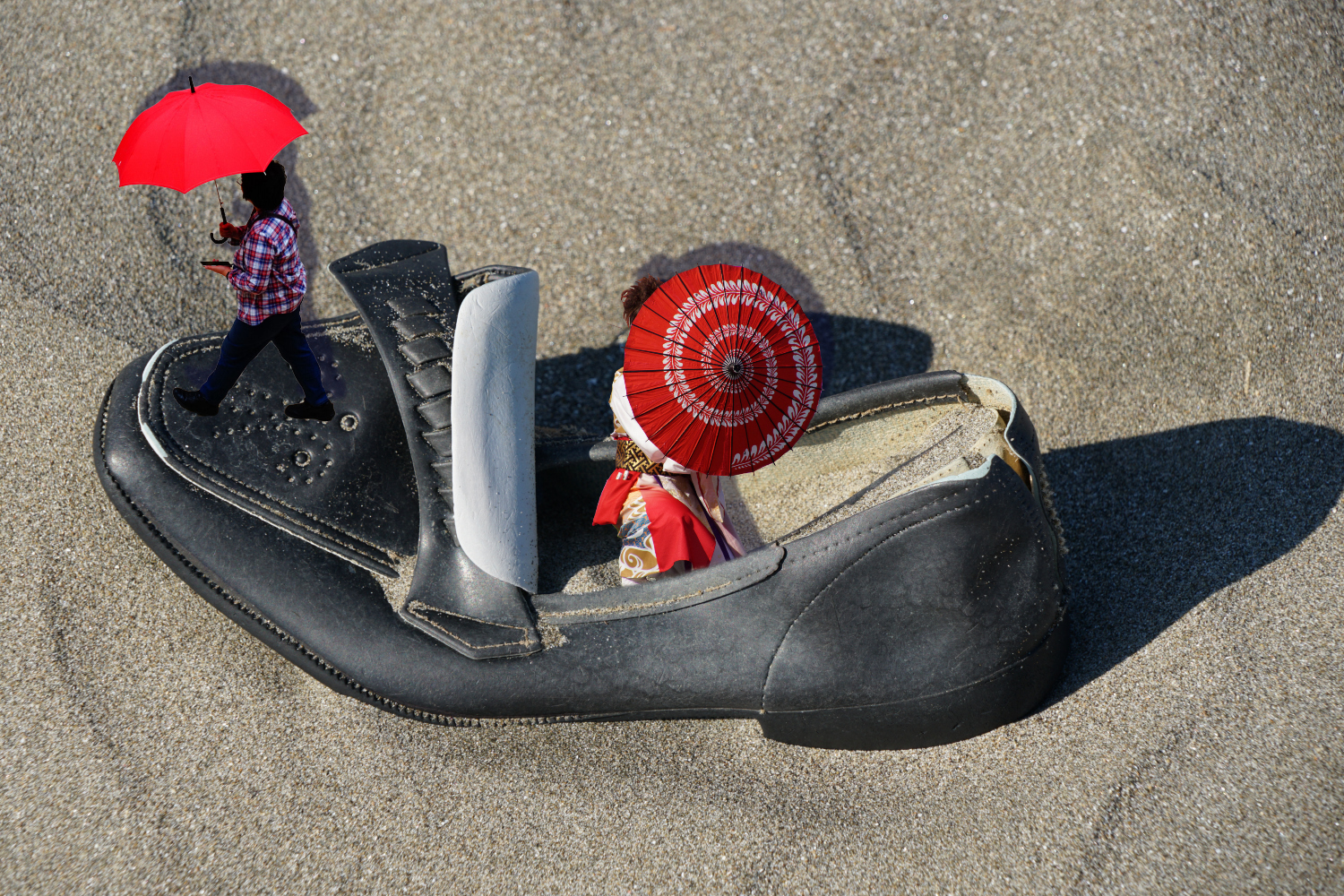 紅い傘を差した