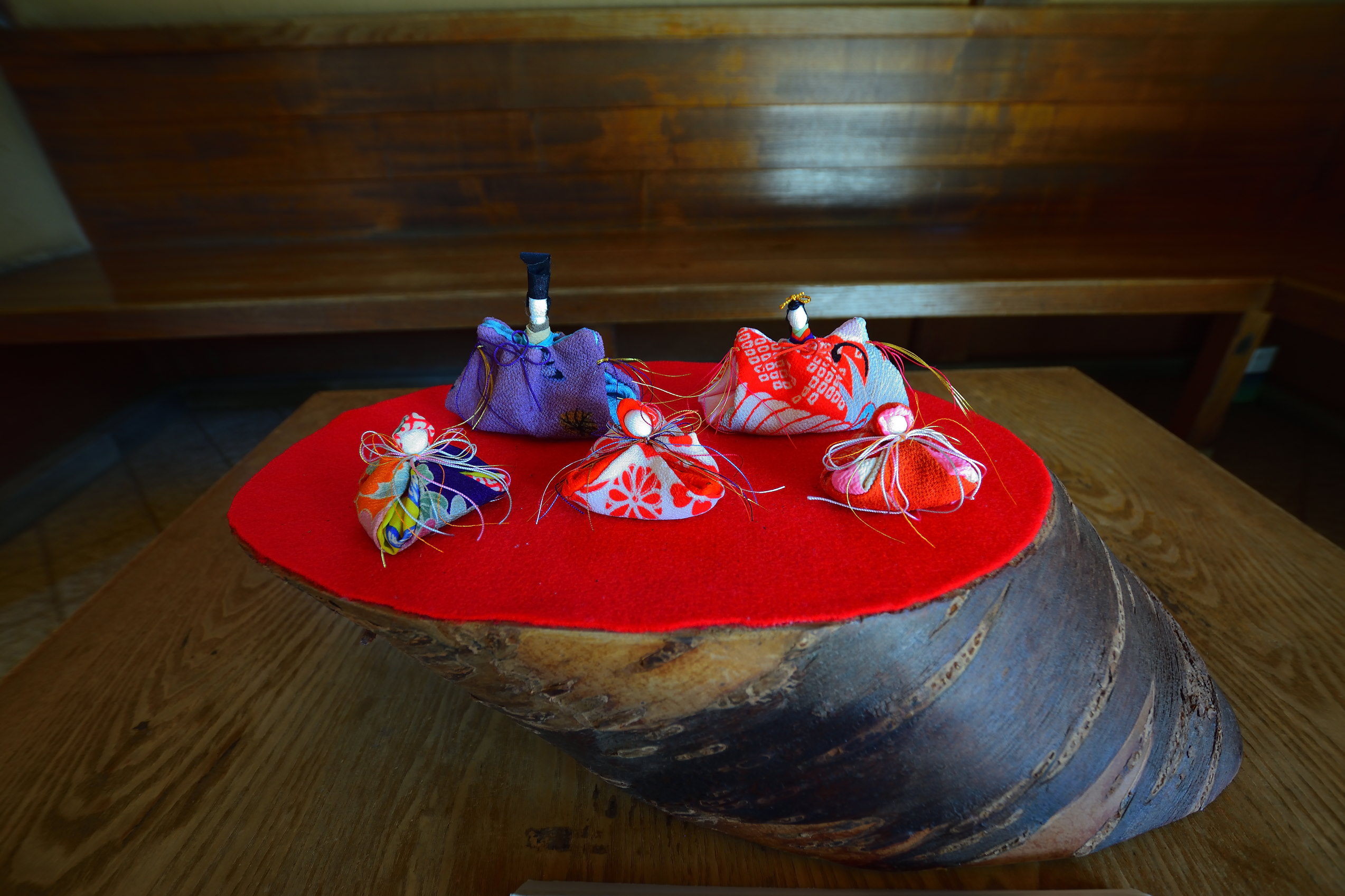 年季の入った佇まいに囲まれ赤の丸毛氈に設えられた現代風飾り雛、その素朴さに着眼されたのがいいですね~。