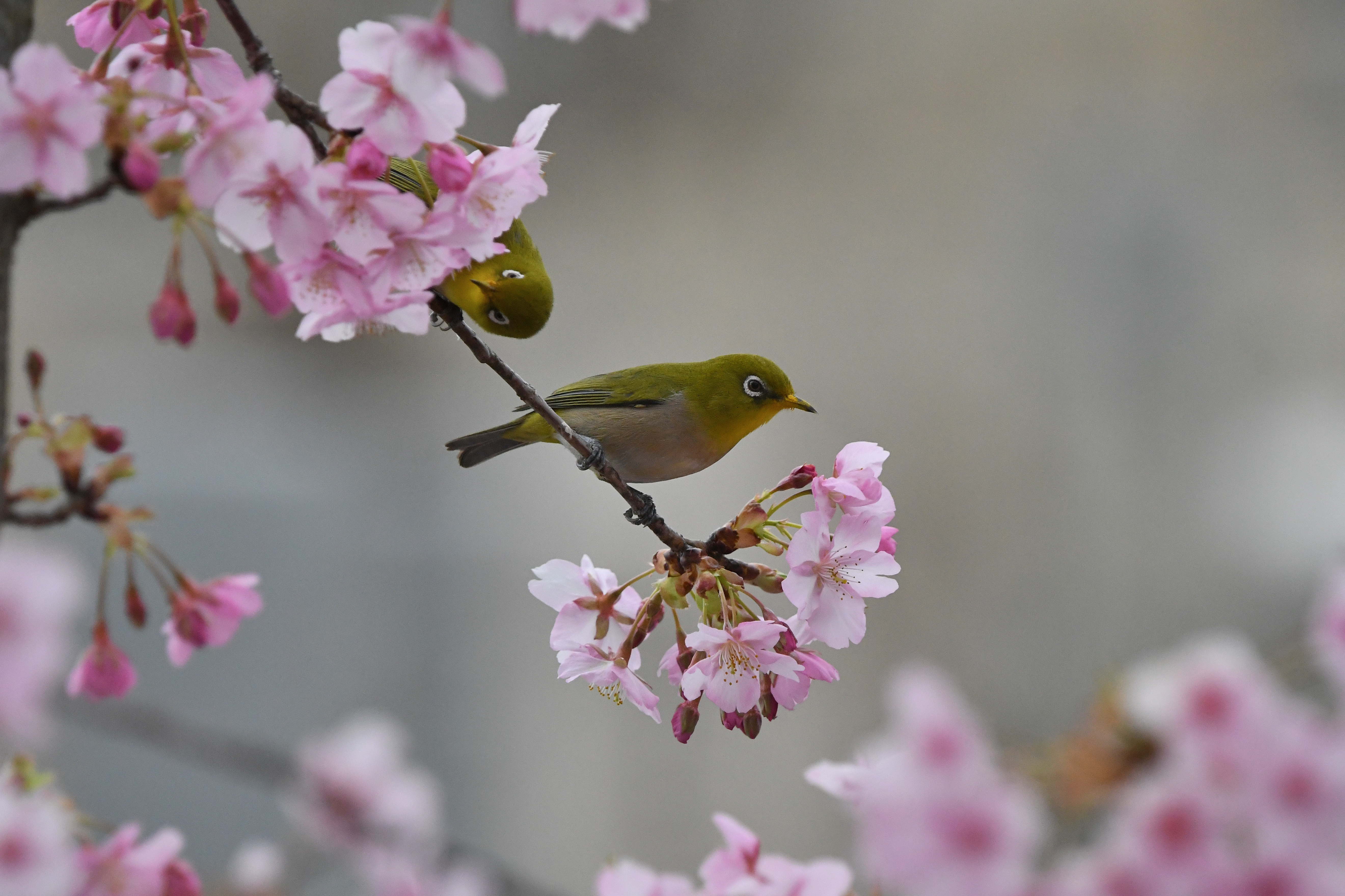 花にメジロが2羽、いずれもジャスピンですね。
