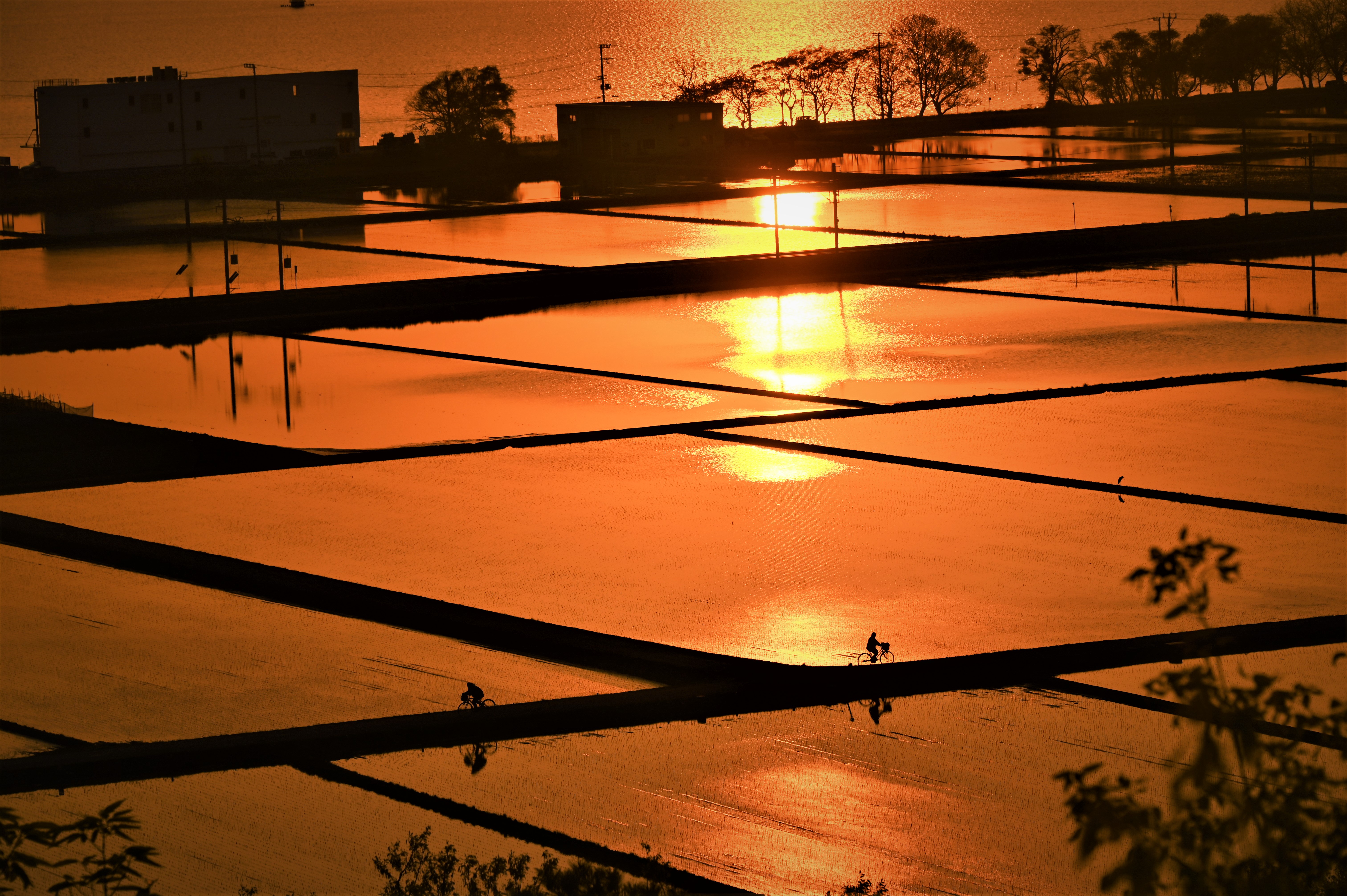 水田の向こうは、海でしょうか