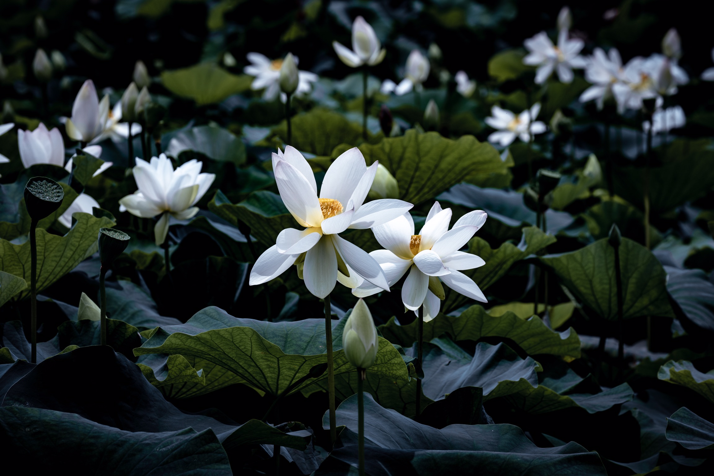 咲き乱れる白蓮