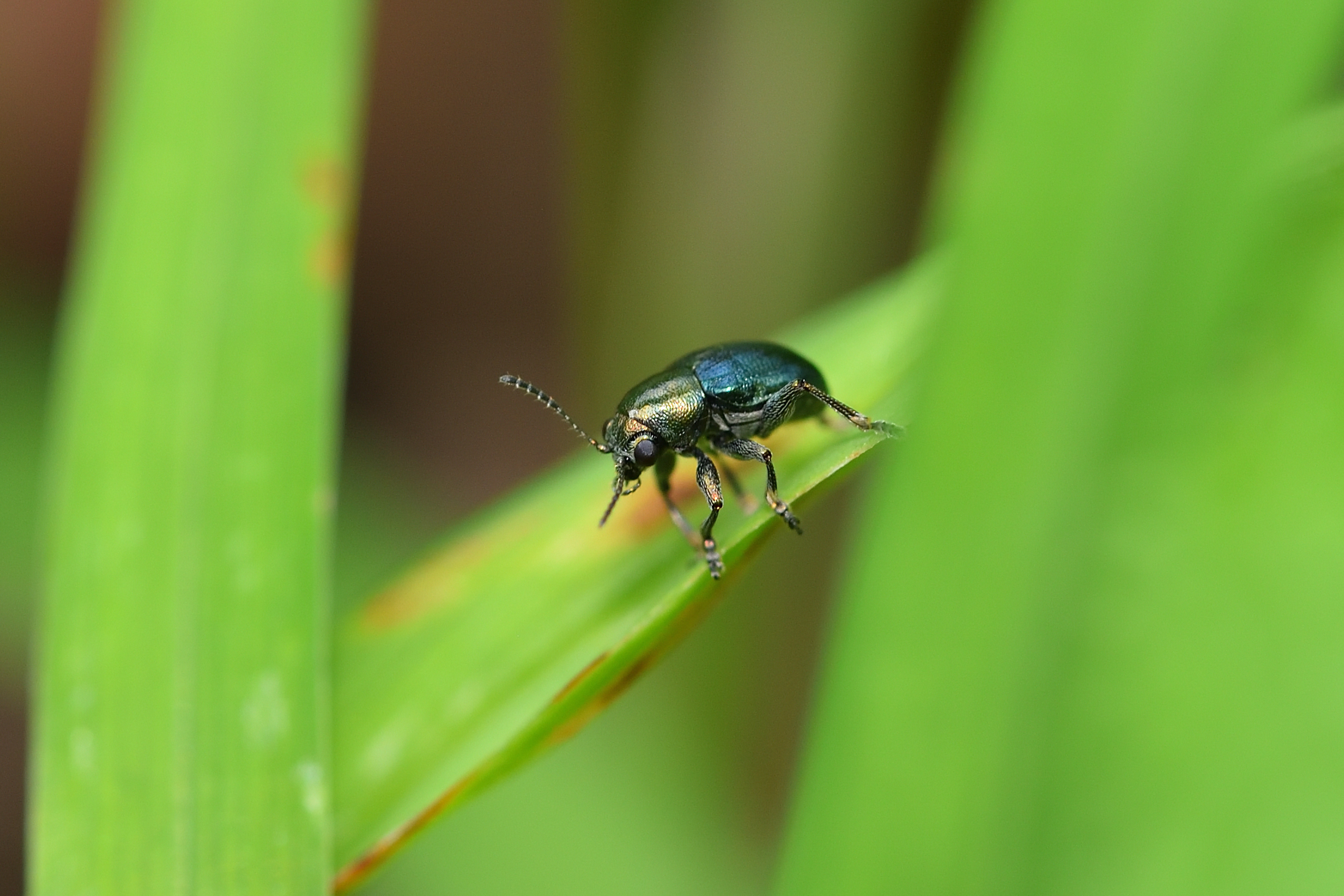 普通は金色に近い銅色か藍色などの単色が多いのですが、この個体は二色でちょっと珍しいです。