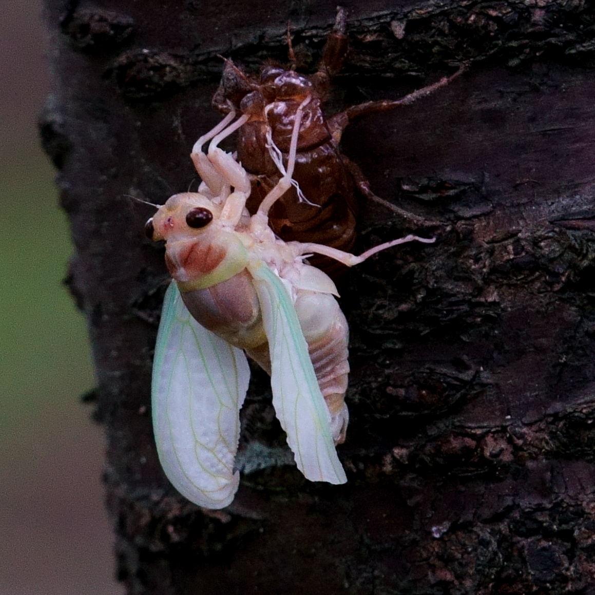 アオバズクの撮影を諦め、帰り道でアブラゼミの羽化を見つけて、ほっこりしました。
