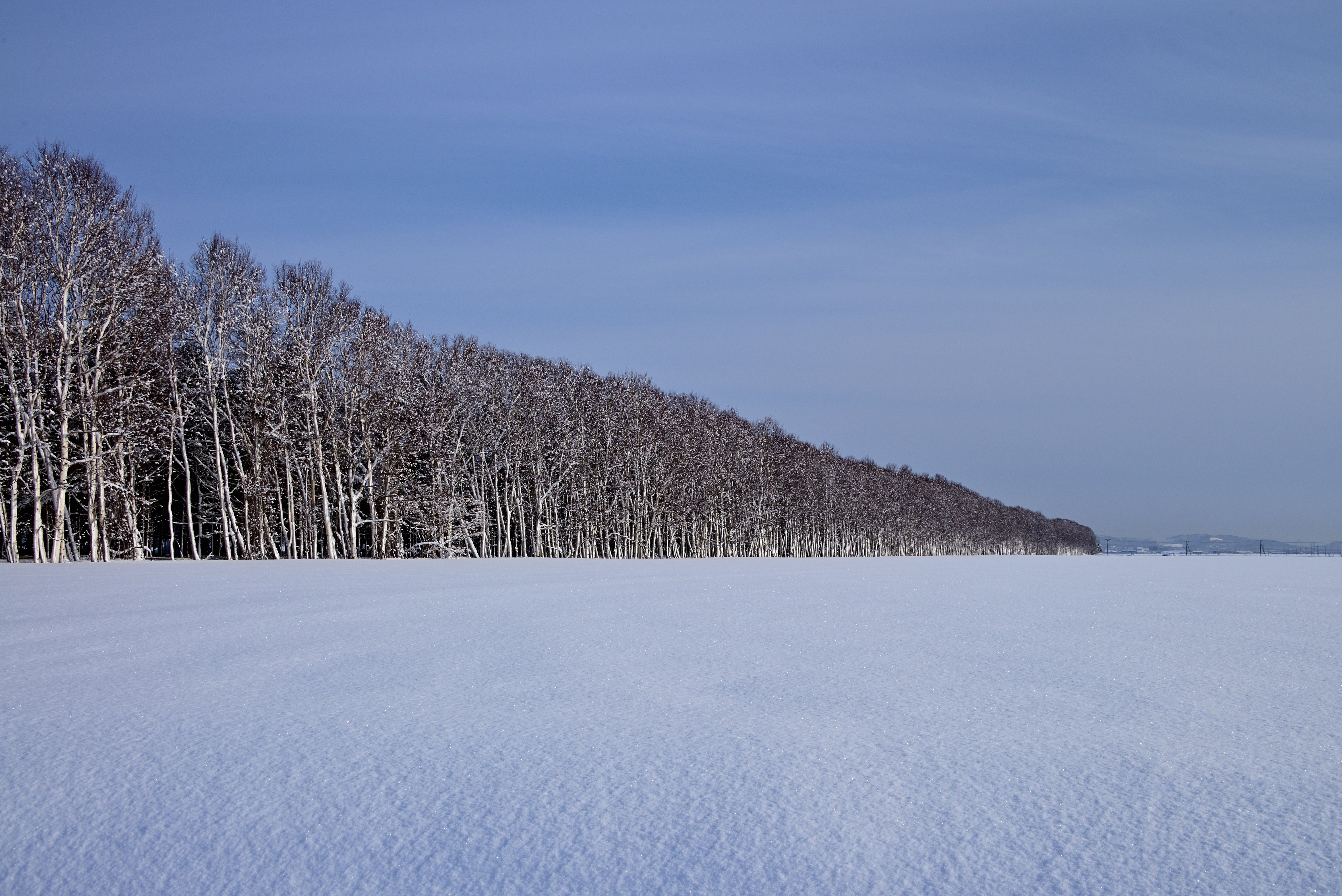 懐かしい北海道の風景。 空知北村、氷点下14℃。白樺防風林。