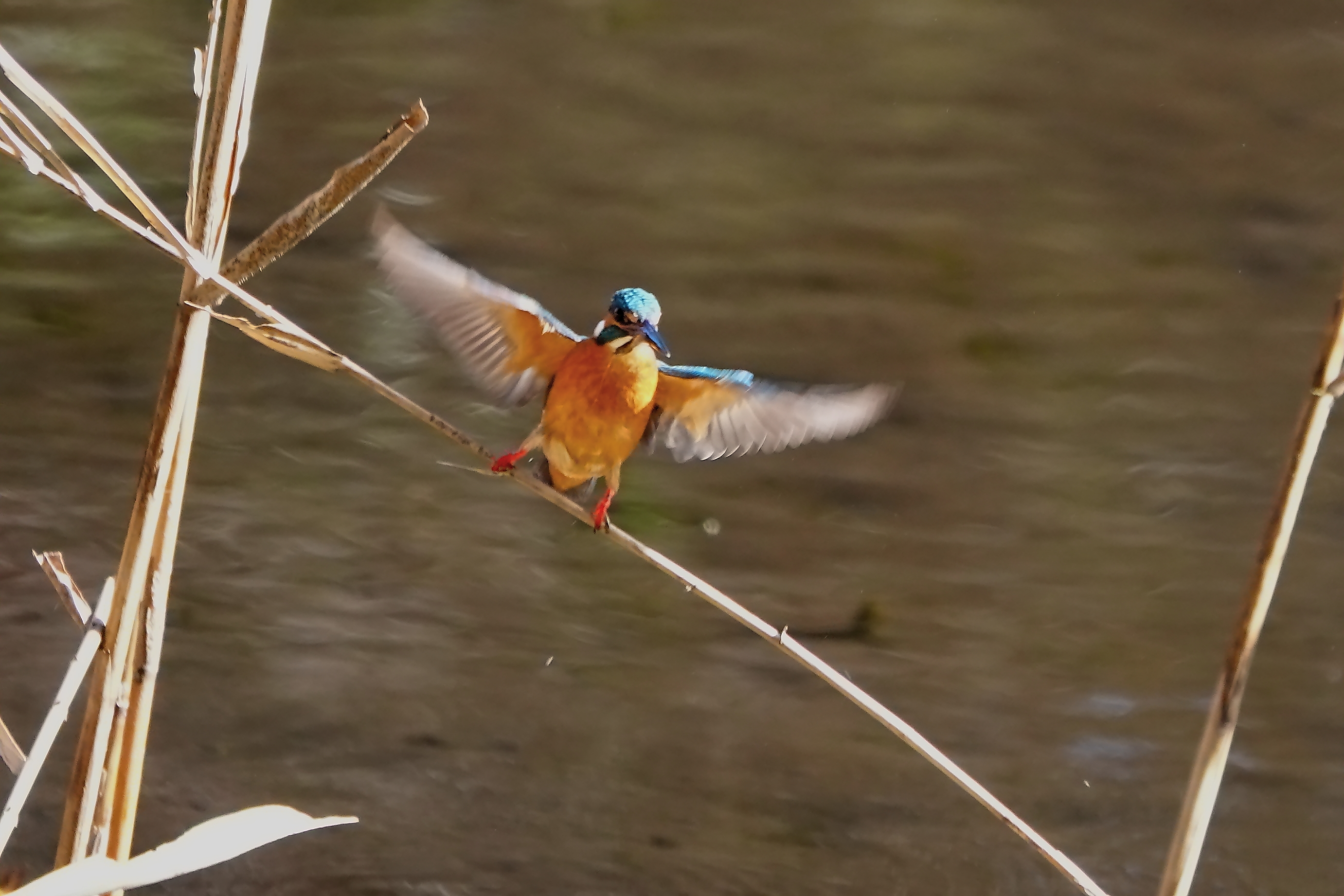 獲物は小さくても自分の体の重みで細い葦がゆらゆら揺れて、羽搏きが中々止まりません。