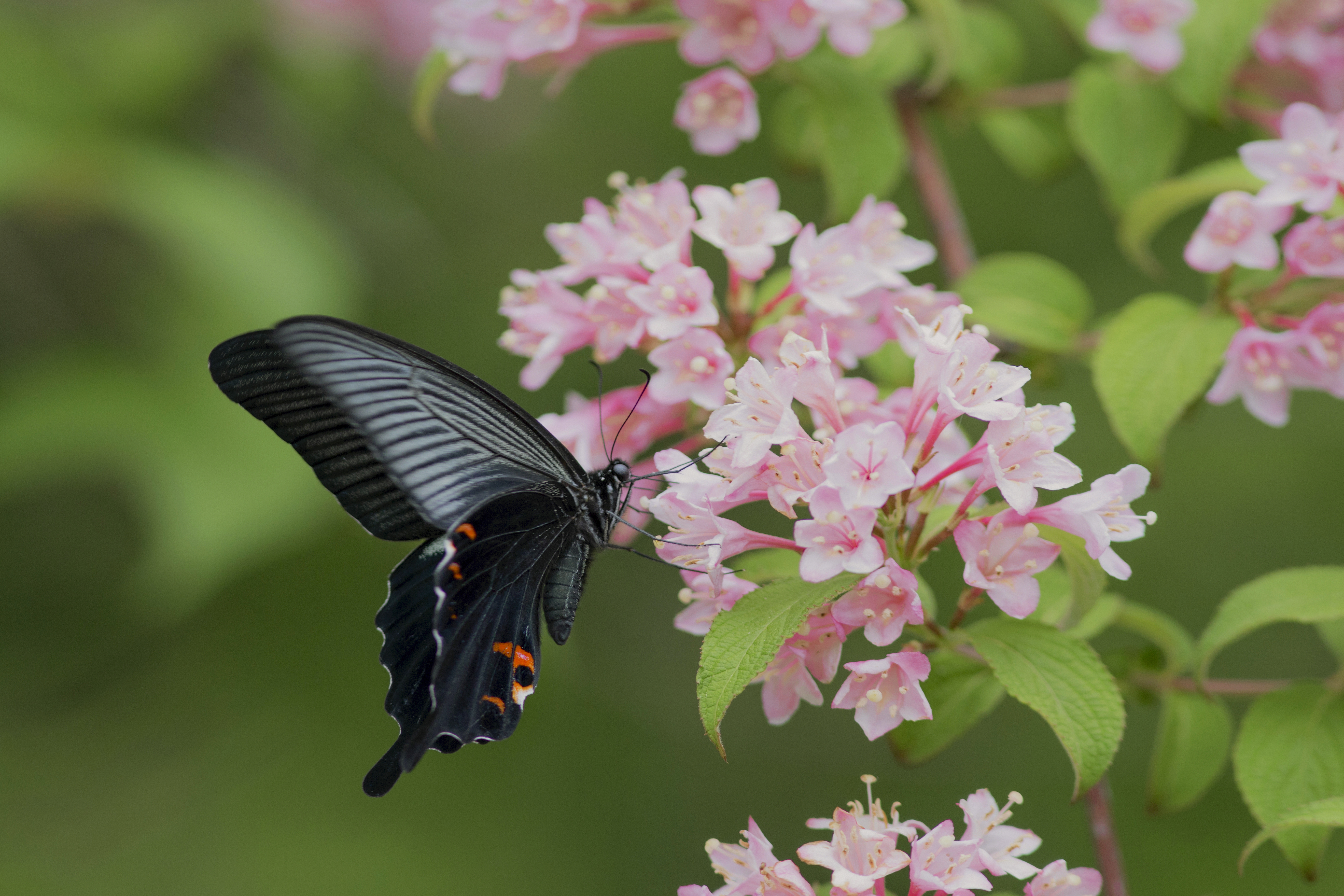 華やかなピンクのタニウツギとクロアゲハのコントラストが鮮やかでした(*^_^*)