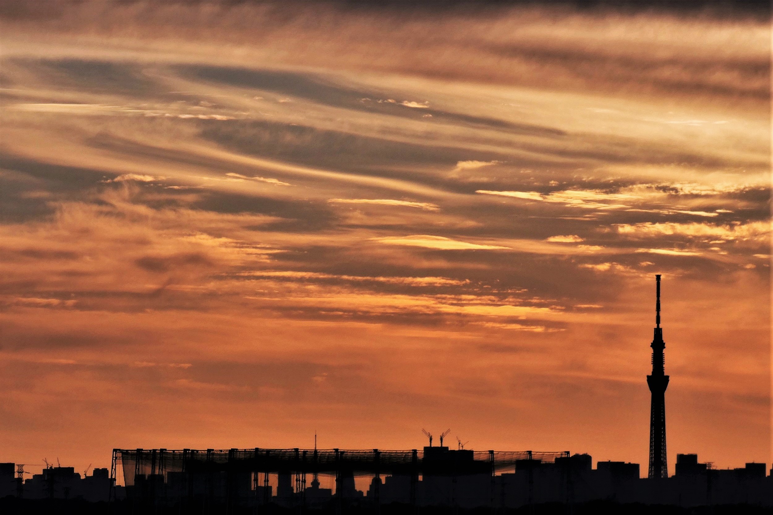 昨日の残照には様々な雲が出現していた。寒気団がもたらしている光景のようだが、最も明るい雲は目では彩雲のように見えたが、写真では写し撮れてなかった。また、左から右に流れる雲は高層雲のようでもあるが、風に流されている積雲であろう。地平近くには靄のような雲も映っているが、層雲と同じ類かも知れない。