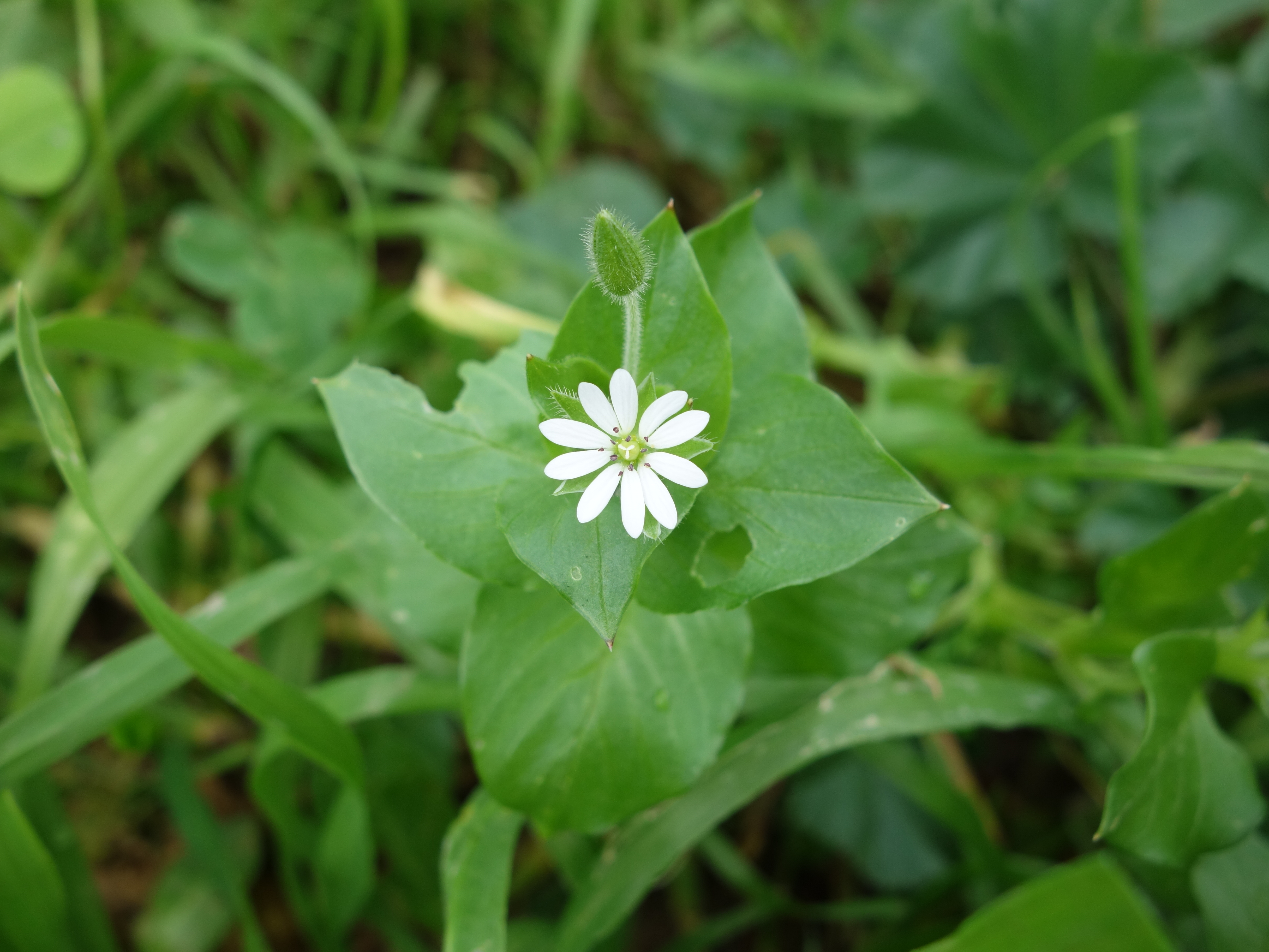 風は冷たく、まだ春は遠いはず。でも、ハコベの花が咲き出しました。