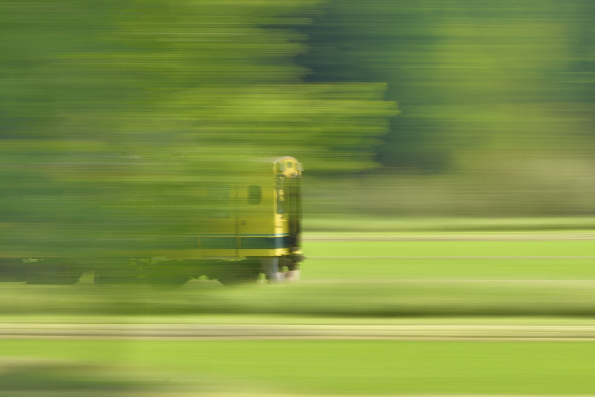 いすみ鉄道の祠のある場所の近くを1/4秒の流し撮りをしました。