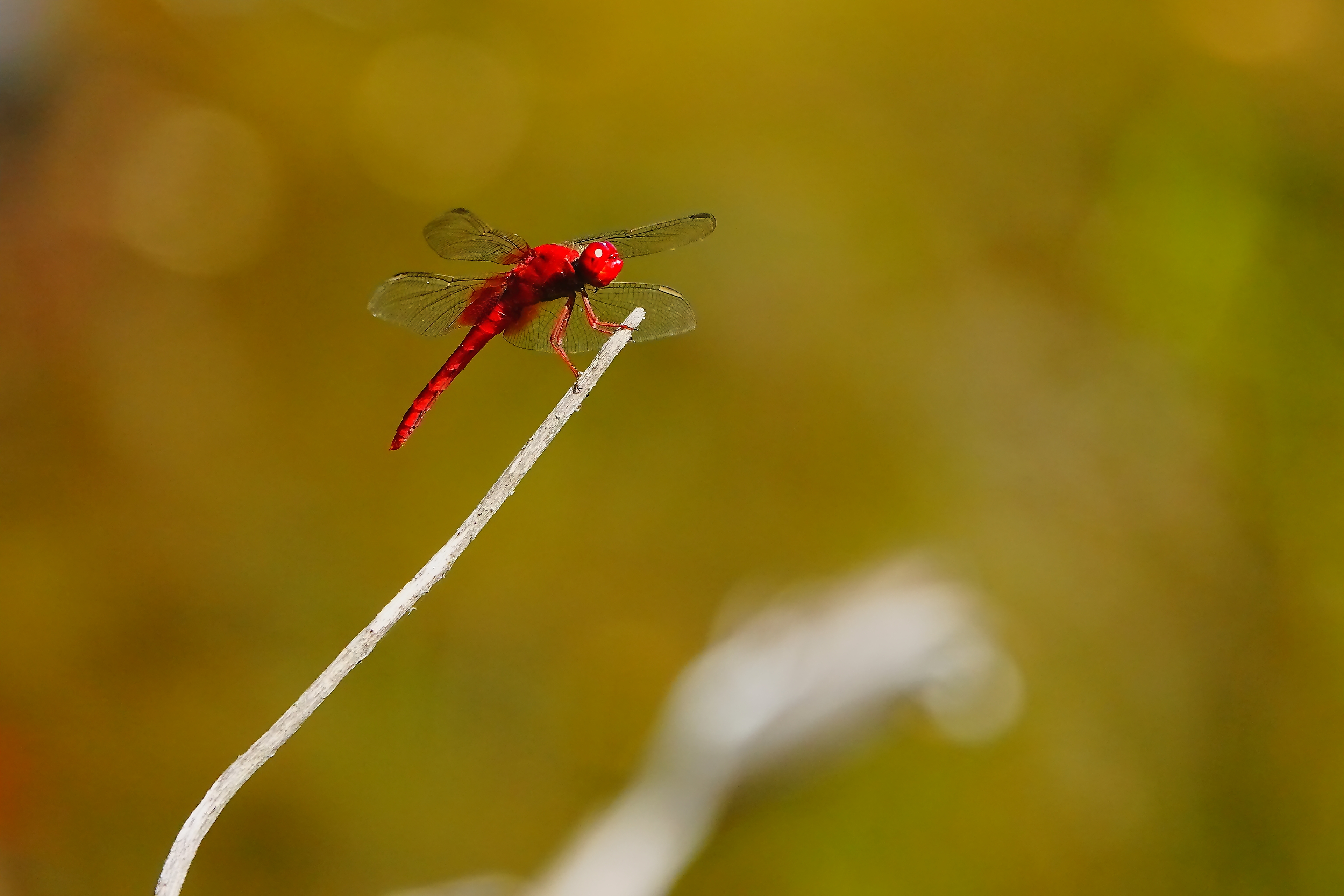 翅を除いて複眼まで真っ赤なショウジョウトンボの雄。