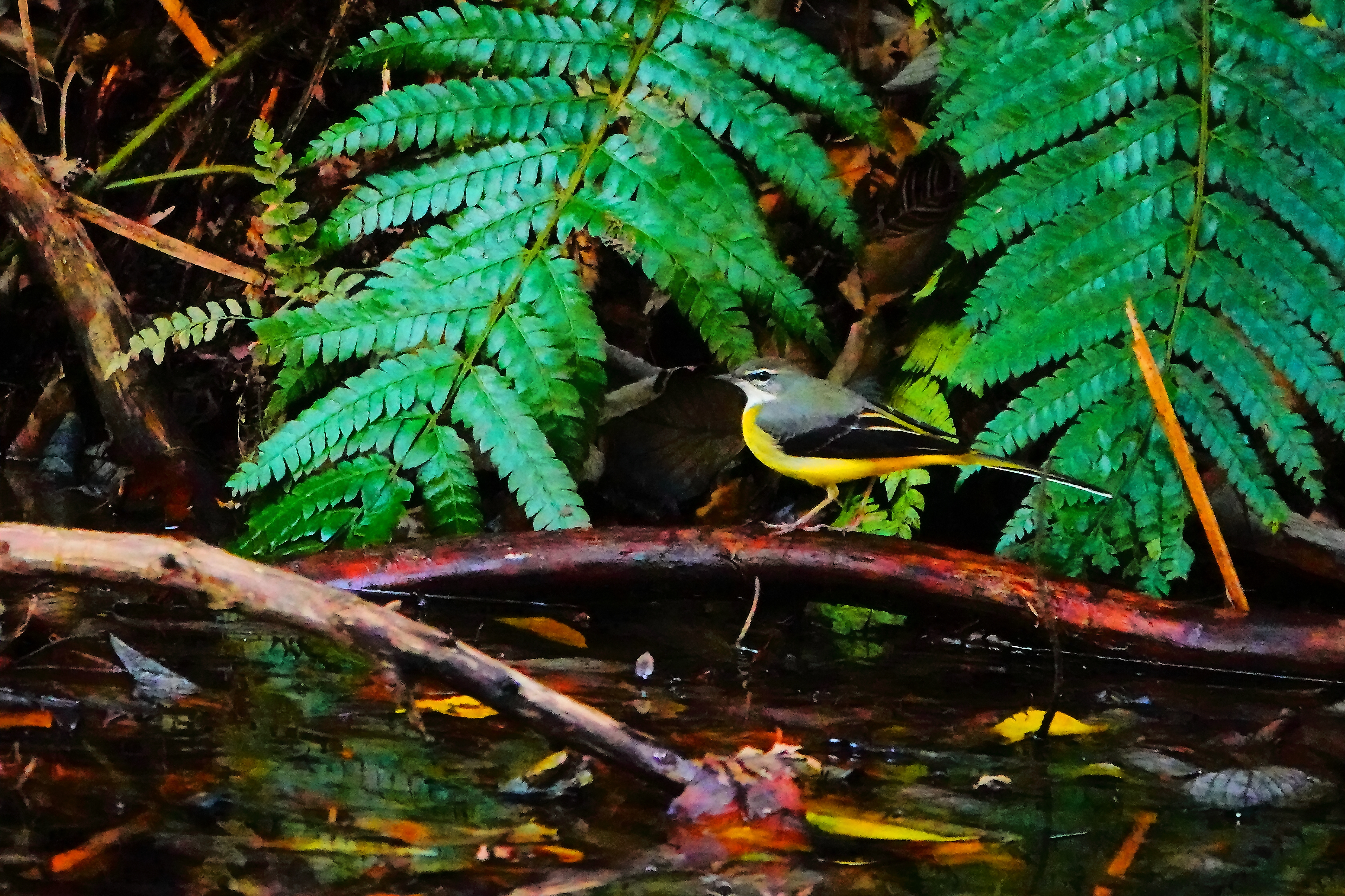 羊歯にキセキレイ