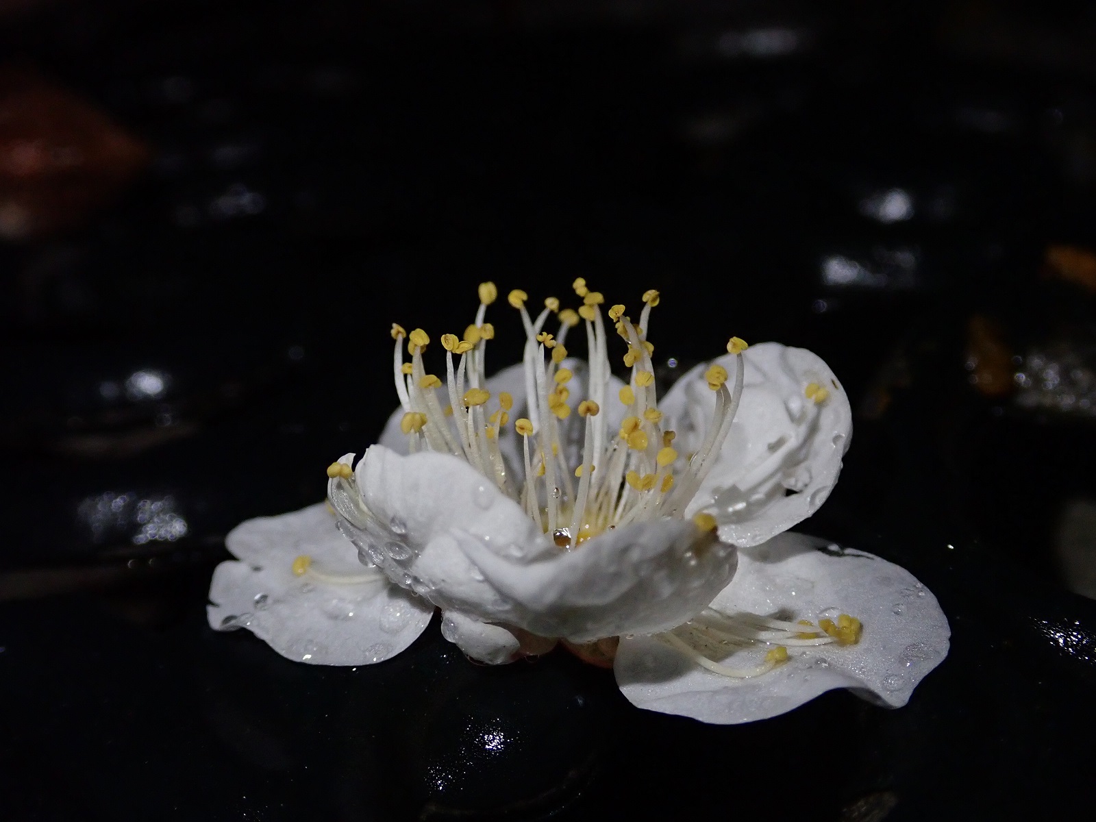 梅が一輪、まるで蜜柑みたいな恰好で落ちていました。