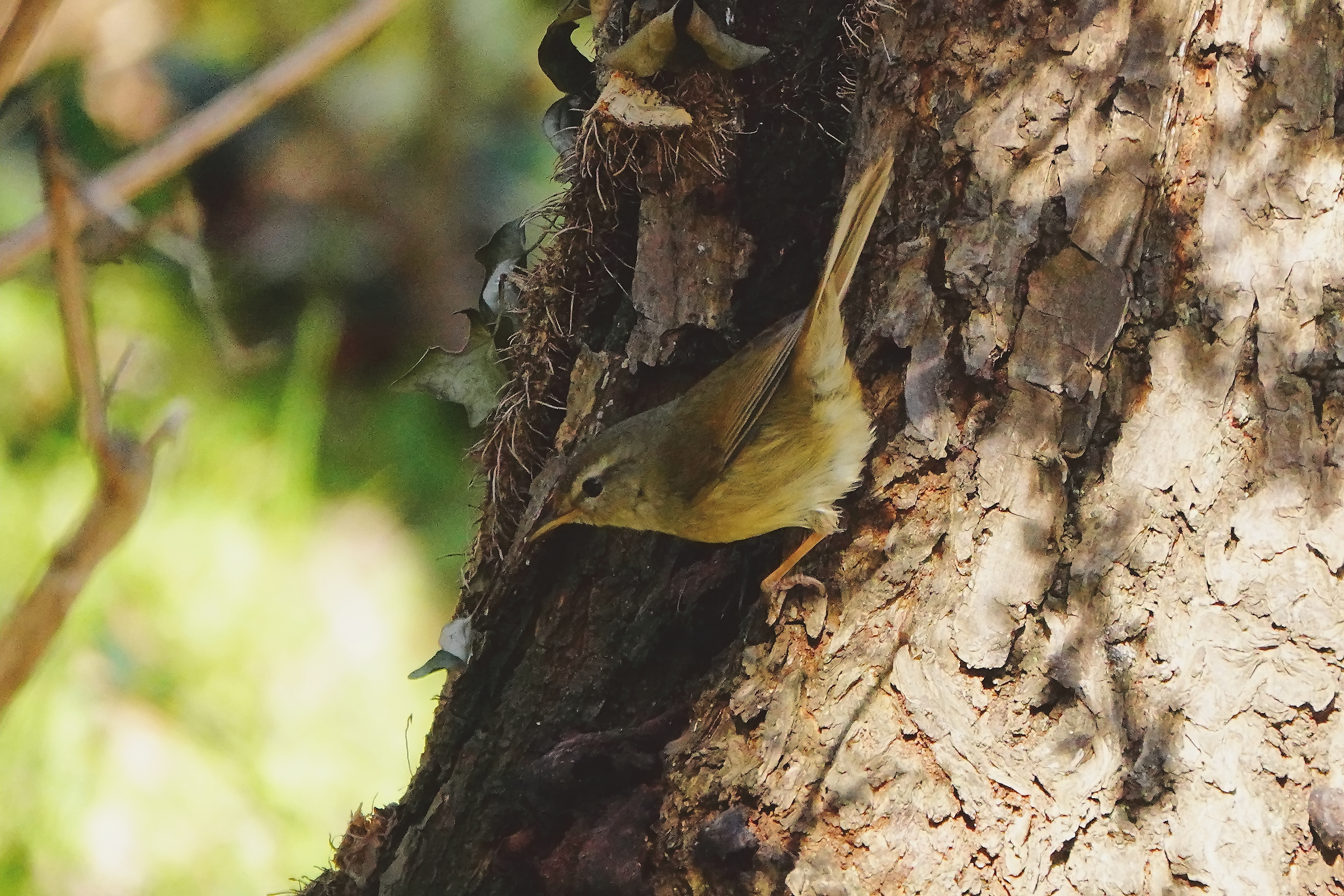 薮から飛び出し、少し離れた所へ飛んだと思ったら、一瞬近くの幹の根元に止まり、