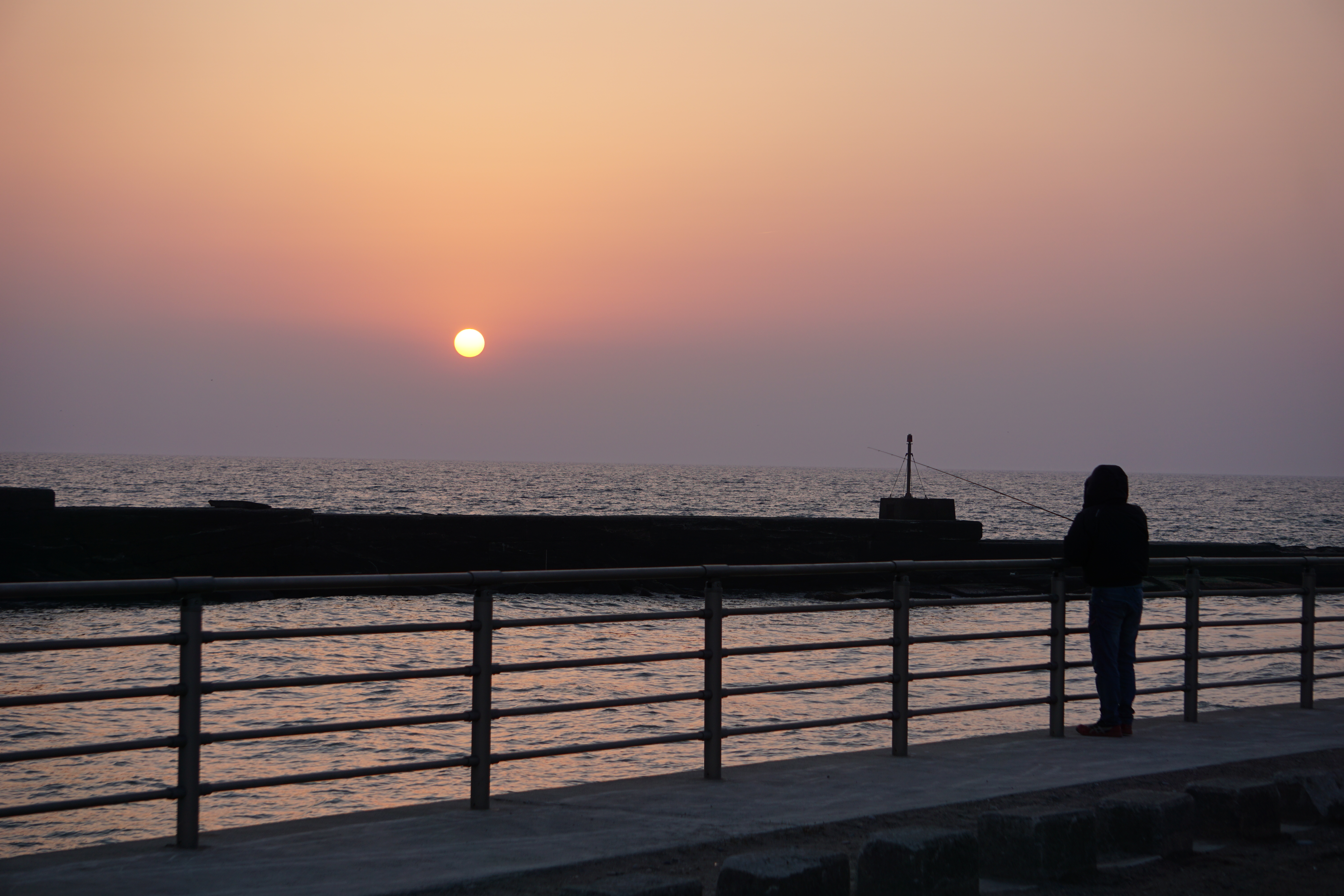 夕日と釣り人