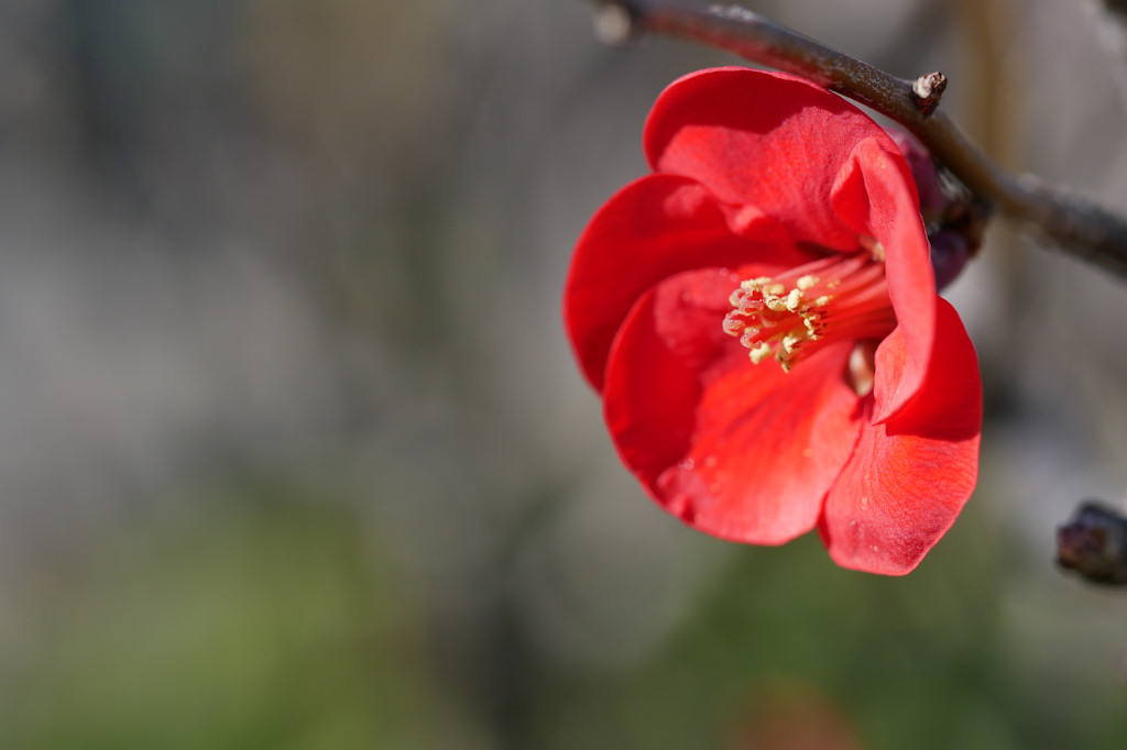 いつもの散歩コースにある木瓜(ボケ)の花である。日を追うごとに数を増やしているが、先揃うのはもう少し先になりそうだ。