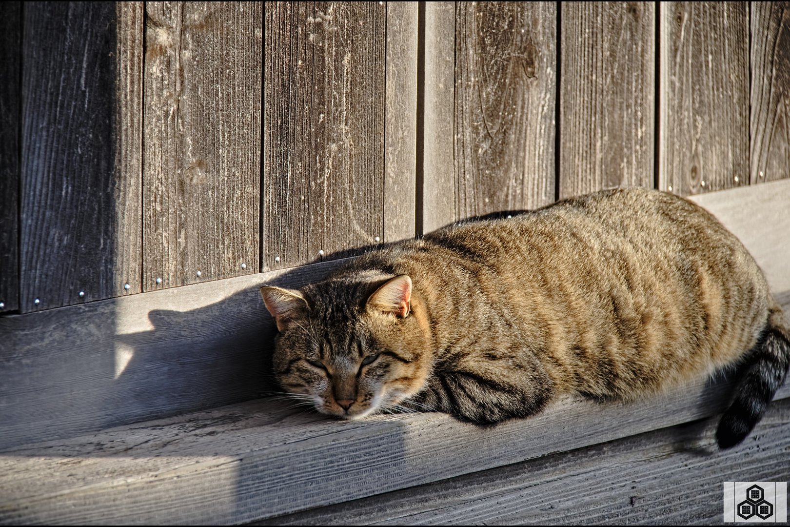 狭くても、頑張って日向ぼっこしていた野良猫