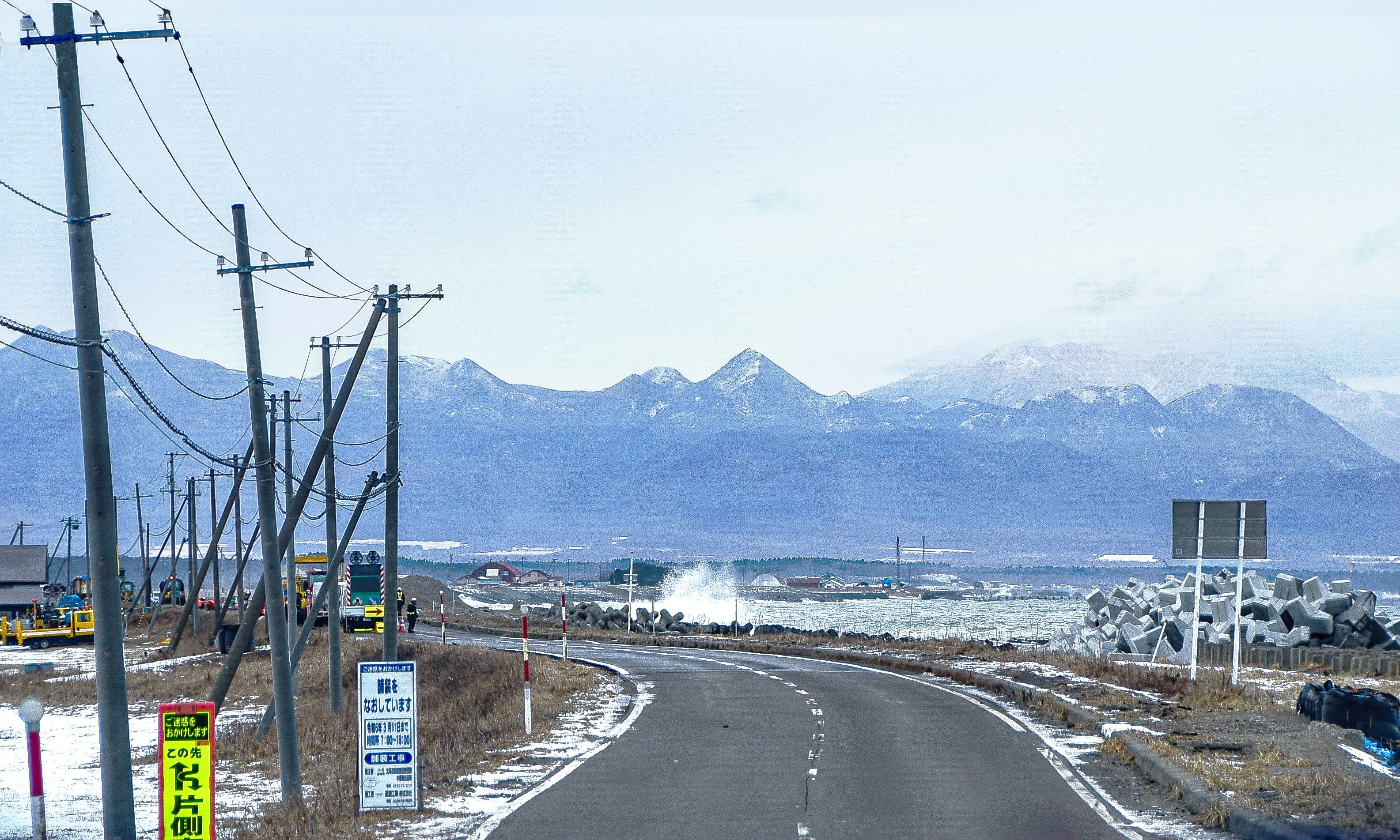 野付半島を走る道道950号・ 野付風蓮公園線にて西北方向の景観。