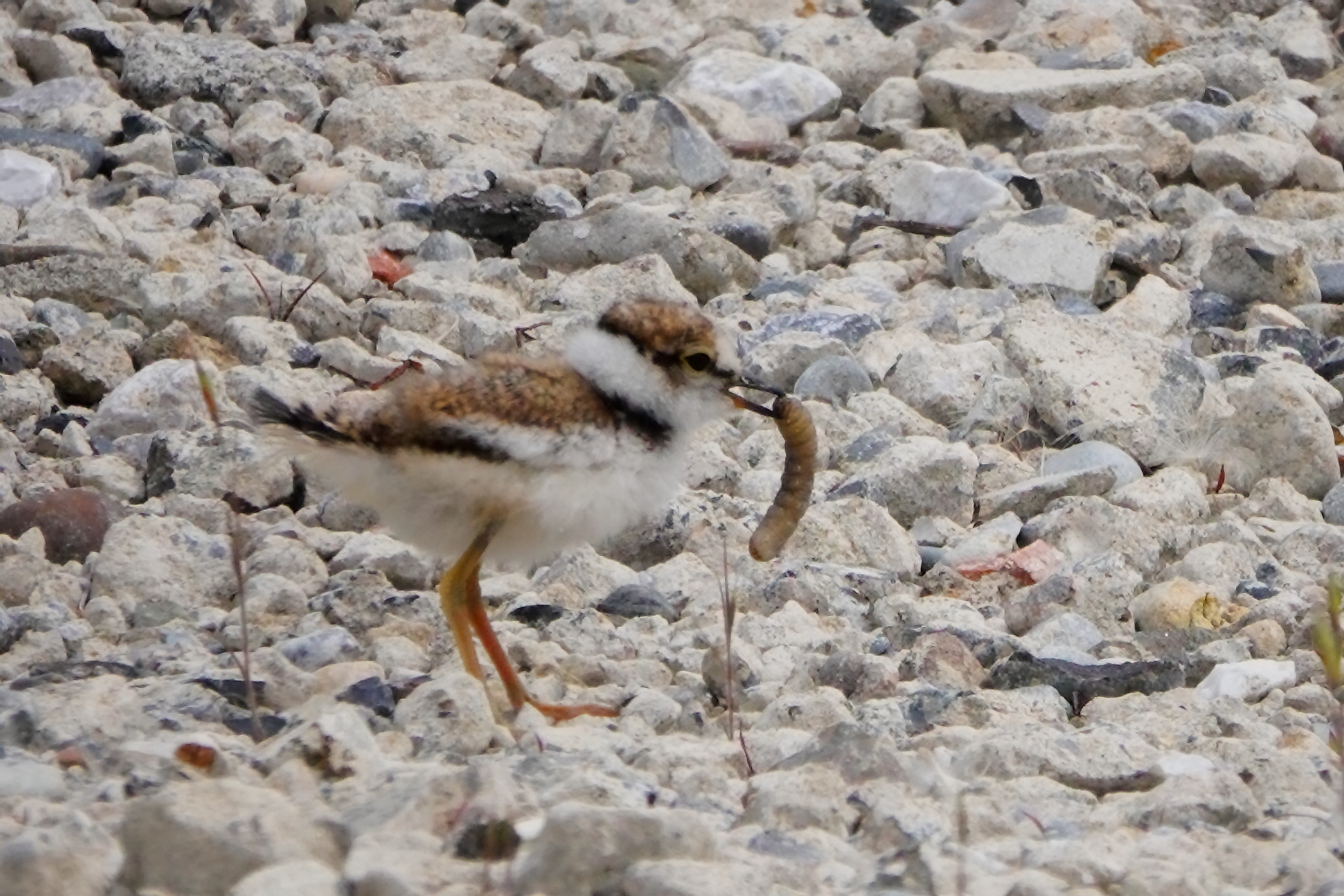 前作「コチドリの雛羽搏く!」と同じ孵化後13日、コチドリの雛が大きな虫を咥えました。これまでは幾ら